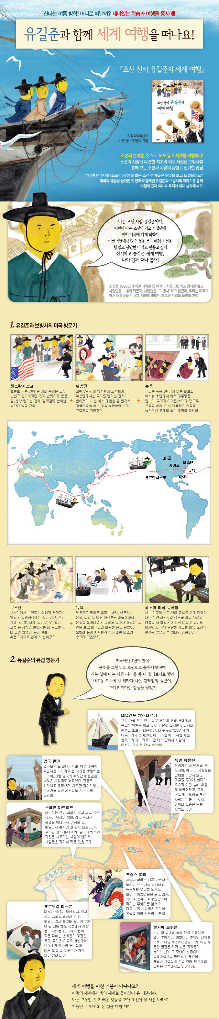 ¿ª»ç, Àι°, ¹®È, °æÁ¦ µî ¼¼°èÀÇ ±³¾çÀ» Àç¹ÌÀÖ´Â ±Û°ú °³¼ºÀû ±×¸²À¸·Î ÀüÇÏ´Â ¡¸Áö½Ä ´Ù´ÙÀͼ±¡¹ Á¦39±Ç ¡ºÁ¶¼± ¼±ºñ À¯±æÁØÀÇ ¼¼°è ¿©Çà¡». ÀÌ ½Ã¸®Áî´Â À¯Ä¡¿ø¤ýÃʵîÇб³ ¾ÆÀ̵éÀÇ È£±â½ÉÀ» ä¿öÁÖ¸é¼ ³í¸®Àû »ç°í·ÂÀ» Ű¿öÁÖ´Â Áö½Ä ±×¸²Ã¥À¸·Î ÀÌ·ç¾îÁ® ÀÖ´Ù. ±³°ú¼¿¡¼ ª°Ô ³Ñ¾î°¡°Å³ª ¹Ìó ´Ù·çÁö ¸øÇÑ Áö½Äµµ ¾ò°Ô µÈ´Ù. ÀÌ Áö½Ä ±×¸²Ã¥¿¡¼´Â Á¶¼± ¼±ºñ 'À¯±æÁØ'À» ÅëÇØ Á¶¼± ÃÖÃÊÀÇ ¿Ü±³ »çÀý´ÜÀÎ º¸ºù»ç À̾߱⸦ µé·ÁÁÖ°í ÀÖ´Ù. À¯±æÁØÀÌ Ã¹ ¹Ì±¹ À¯ÇлýÀ¸·Î¼ ¹Ì±¹¿¡¼ °øºÎ¸¦ ¸¶Ä¡°í µ¹¾Æ¿Í Àú¼úÇÑ <¼À¯°ß¹®> µîÀ» ²Ä²ÄÈ÷ ÀÐ°í ºÐ¼®ÇÏ¿© âÀÛÇÑ °ÍÀÌ´Ù. È£±â½É°ú µÎ·Á¿ò, ¿¸Á°ú À§ÃàÀ» ¾È°í¼ °« ¾²°í µµÆ÷ ÀÔ°í ¼¼°è¸¦ ´©ºó Á¶¼± ¼±ºñµéÀÇ ´ç´çÇÏ°íµµ ¾û¶×ÇÑ ¸ð½ÀÀ» °¨µ¿ÀûÀ¸·Î ±×·Á³Â´Ù.