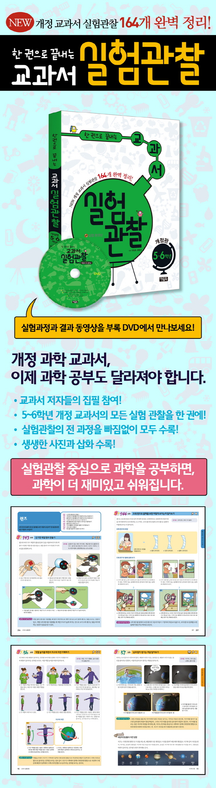 Ã¥¼Ò°³¡º±³°ú¼ ½ÇÇè°üÂû 5 6Çг⡻Àº °³Á¤ ±³°ú¼¿¡ ³ª¿À´Â ½ÇÇè°üÂûÀ» »ý¸í, Áö±¸¿Í ¿ìÁÖ, ¹°Áú, ¿¡³ÊÁöÀÇ 4°³ ¿µ¿ªÀ¸·Î ºÐ·ùÇÏ°í °¢°¢ÀÇ 164°³ÀÇ ÁÖÁ¦¸¦ ´Ù·é Ã¥ÀÌ´Ù. °ü·Ã °³³ä¿ø¸®»Ó¸¸ ¾Æ´Ï¶ó È®ÀåµÈ °³³äÀ̳ª ºÎ¿¬¼³¸í, Àç¹ÌÀÖ´Â °úÇÐ °ü·Ã À̾߱â±îÁö ÇÔ²² ÇнÀÇÒ ¼ö Àֱ⠶§¹®¿¡ ޱ¸ÇнÀÀº ¹°·Ð, À̷бîÁö ³õÄ¡Áö ¾Ê°í ¼³¸íÇÑ´Ù.
