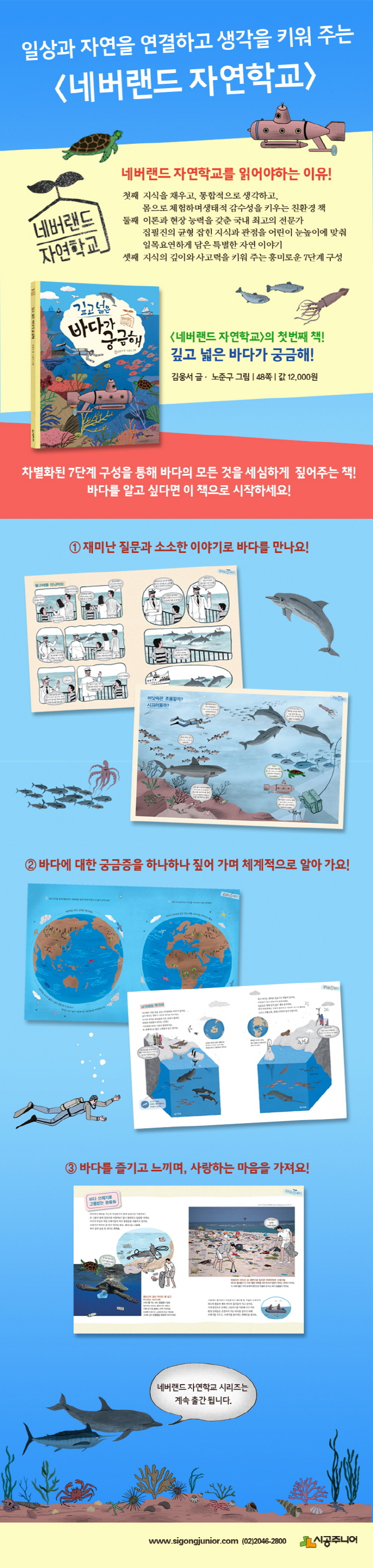 ÀÏ»ó°ú ÀÚ¿¬À» ¿¬°áÇÏ°í »ý°¢À» Ű¿ö ÁÖ´Â ¡¸³×¹ö·£µå ÀÚ¿¬Çб³¡¹ÀÇ Ã¹ ¹øÂ° Ã¥ÀÎ ¡º±í°í ³ÐÀº ¹Ù´Ù°¡ ±Ã±ÝÇØ¡»´Â ¹æ´ëÇÑ ¹Ù´Ù Á¤º¸¸¦ ÁÖÁ¦¿¡ ¸Â°Ô ¼±º°ÇÏ¿© ´Ù¾çÇÑ Çü½ÄÀÇ 7´Ü°è¸¦ ÅëÇØ Àϸñ¿ä¿¬ÇÏ°Ô ´ã¾Æ³½ ±×¸²Ã¥ÀÔ´Ï´Ù. ±íÀº Áö½Ä°ú ÇöÀå ´É·ÂÀ» °®Ãá ±¹³» ÃÖ°íÀÇ Àü¹®°¡ ÁýÇÊÁøÀÌ Âü¿©ÇßÀ¸¸ç, Å׸¶º°·Î ´ã±ä ¼³¸íÀº ½±°í Á¤È®ÇÏ¿© ¾ÆÀ̵éÀÌ ³»¿ëÀ» ÀÌÇØÇϱ⠸íÈ®ÇÕ´Ï´Ù.
