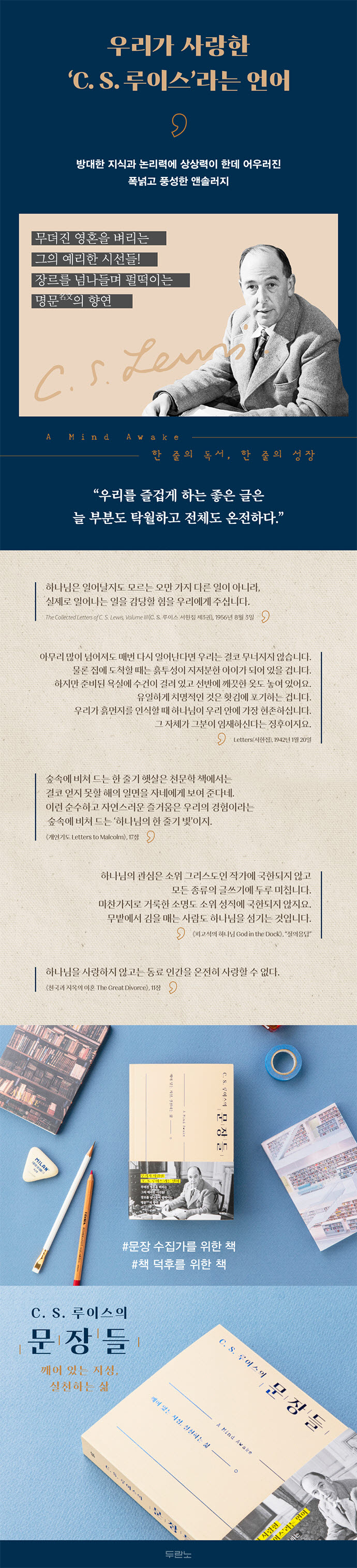Çö´ë ¼¼°è°¡ ±×¾ß¸»·Î ¾ÇÈÀϷηΠġ´Ý°í ÀÖ´Ù°í ¹ÏÀ¸¸é¼µµ, ÇÑÆíÀ¸·Î ´Ã Ȱ±â¸¦ ÀÒÁö ¾Ê¾Ò´Ù. ¸í½Ç»óºÎÇÑ Áö¼ºÀÎÀ̸鼵µ Çϳª´ÔÀ» Àý´ëÀûÀ¸·Î ½ÅºÀÇß´Ù´Â Á¡¿¡¼ ±×´Â ÁøÁ¤ÇÑ ½ÅºñÁÖÀÇÀÚ¿´´Ù. ¹Ì½ÃÀûÀ¸·Î º¸¸é ¿ª¼³ÀÌ ¸¹Àº ·çÀ̽ºÁö¸¸, »ç½Ç Àüü¸¦ º¸¸é ±×·¸Áöµµ ¾Ê´Ù. ½ÅÀÚÀÇ Âü¸ð½ÀÀÌ ¼¼»ó¿¡ ¿ö³« ³¸¼³´Ù º¸´Ï ±×°¡ ÀÌ»óÇØ º¸À̱⠽¬¿ï »ÓÀÌ´Ù. ±×´Â Àΰ£ÀÇ °ø·Î¿¡ º°·Î ºñÁßÀ» µÎÁö ¾Ê¾ÒÀ¸¹Ç·Î, ÀÚ½ÅÀÇ Àú¼¸¦ ÃÖ´ëÇÑ ±ð¾Æ¼ ¸»Çß°í ´õ·¯´Â ¾Æ¿¹ Á¦¸ñÁ¶Â÷ ±â¾ïÇÏÁö ¸øÇß´Ù. ½Å¾Ó ¼ÀûÀ» ½á¼ ±íÀº ¿µÇâÀ» ¹ÌÄ¡´Â °ÍÀ¸·Î ÀÚ½ÅÀÌ Çϳª´ÔÀ» ¼¶±ä´Ù°í ¾ó¸¶µçÁö Á¤´çÈÇÒ ¼öµµ ÀÖÀ¸·Ã¸¸, ±×´Â ±×¸®½ºµµÀÎÀ̶ó¸é ¸¶¶¥È÷ Çϳª´ÔÀ» À§ÇØ Å¸ÀÎÀ» Á÷Á¢ ´ë¸éÇØ¾ß ÇÑ´Ù°í ¹Ï¾ú´Ù. ¡´177ÂÊ¡µ âÁ¶ÁÖ²² ¹ÝÇ×ÇÏ´Â ÇÇÁ¶¹°Àº ¹ÝÇ×ÇÒ Èû±îÁö Æ÷ÇÔÇØ¼ ÀÚ½ÅÀÇ ¸ðµç ÈûÀÇ ±Ù¿ø¿¡ ¹ÝÇ×ÇÏ´Â °ÍÀÌ´Ù. ¡¦¡¦ ÀÌ´Â ²ÉÇâ±â°¡ ²ÉÀ» ÇØÄ¡·Á´Â °Í°úµµ °°´Ù. ¡¶½Ç³«¿ø ¼¹® A Preface to ¡°Paradise Lost¡±¡·, 13Àå ¡´178ÂÊ¡µ ÀÌ»óÇÏ°Ô ¿ì¸®´Â ½Ã°£¸¸ Áö³ª¸é ÀÚ½ÅÀÇ Á˰¡ ¾ø¾îÁø´Ù°í Âø°¢ÇÑ´Ù. ¾î·ÈÀ» ¶§ÀÇ ÀÜÀÎÇÑ Çൿ°ú °ÅÁþ¸»ÀÌ ¸¶Ä¡ ÇöÀçÀÇ ÀڽŰú´Â ¹«°üÇÑ µíÀÌ ¸»ÇÏ¸é¼ ¿ô±â±îÁö ÇÑ´Ù. ±×·± ¸»À» ³ª´Â ³²µé¿¡°Ô¼µµ µé¾ú°í, ³ª Àڽŵµ ±×·¸°Ô ¸»Çϰï Çß´Ù. ÇÏÁö¸¸ ÁË ÀÚüµµ ±× ÁË¿¡ ´ëÇÑ Ã¥ÀÓµµ ½Ã°£ÀÌ Áö³´Ù°í Á¶±Ýµµ ´Þ¶óÁöÁö ¾Ê´Â´Ù. ÁËÃ¥À» ¾Ä¾î ÁÖ´Â °ÍÀº ¼¼¿ùÀÌ ¾Æ´Ï¶ó ȸ°³¿Í ±×¸®½ºµµÀÇ ÇÇ´Ù. ¡¶°íÅëÀÇ ¹®Á¦ The Problem of Pain¡·, 4Àå ¡´184ÂÊ¡µ »çźÀÌ ¿ì¸®ÀÇ Ã¹ Á¶»óÀÇ ¸Ó¸´¼Ó¿¡ ³Ö¾î ÁØ »ý°¢Àº ±×µéµµ ¡®Çϳª´Ôó·³ µÉ¡¯ ¼ö ÀÖ´Ù´Â °ÍÀ̾ú´Ù. ÀúÀý·Î »ý°Ü³ Á¸ÀçÀÎ ¾ç ÀÚ¸³ÇÒ ¼ö ÀÖ°í, ÀÚ½ÅÀÇ ÁÖÀÎÀÌ µÉ ¼ö ÀÖÀ¸¸ç, Çϳª´ÔÀ» ¶°³ª ±×ºÐ ¹Ù±ù¿¡¼ ½º½º·Î ÇູÀ» Áö¾î³¾ ¼ö ÀÖ´Ù´Â °ÍÀ̾ú´Ù. µ·, ºó°ï, ¾ß¸Á, ÀüÀï, ¸Å¸ÅÃá, °è±Þ, Á¦±¹, ³ë¿¹ Á¦µµ µî ¼ÒÀ§ Àηù ¿ª»ç´Â °ÅÀÇ ´Ù ±× °¡¸Á ¾ø´Â ½Ãµµ¿¡¼ ºñ·ÔµÇ¾ú´Ù. Áï Àΰ£ÀÌ Çϳª´Ô ¾Æ´Ñ ´Ù¸¥ µ¥¼ ÇູÀ» ãÀ¸·Á ÇÑ ±æ°íµµ ºñÂüÇÑ À̾߱â´Ù. ¡¶¼øÀüÇÑ ±âµ¶±³ Mere Christianity¡·, 2ºÎ 3Àå ¡´185ÂÊ¡µ ¿ì¸®´Â Àú¸¶´Ù ÀÚ±âÁß½ÉÀûÀÎ »îÀ» Ÿ°í³µ´Ù. ±×·¡¼ ĪÂù¹ÞÀ¸·Á ÀÀ¼®ºÎ¸®°í, ŸÀÎÀÇ »îÀ» ÀÌ¿ëÇϰí, ¿Â ¿ìÁÖ¸¦ ÂøÃëÇÏ·Á ÇÑ´Ù. ƯÈ÷ Àڱ⺸´Ù ³´°Å³ª °Çϰųª ³ôÀº °Í, ÀÚ½ÅÀÌ ¿Ö¼ÒÇÏ°Ô ´À²¸Áú ¸¸ÇÑ °ÍÀ̶ó¸é ¹«¾ùÀÌµç ¸ÖÂïÀÌ °Å¸®¸¦ µÎ°í ±×³É ¿ÜÅçÀÌ·Î ³²À¸·Á ÇÑ´Ù. ÀÌ Àھƴ ¿µÀû ¼¼°èÀÇ ºû°ú °ø±â¸¦ µÎ·Á¿öÇÑ´Ù. ¼ºÀå±â¿¡ ÁöÀúºÐÇÏ°Ô Áö³½ »ç¶÷ÀÌ ¸ñ¿åÀ» µÎ·Á¿öÇÏ´Â °Í°úµµ °°´Ù. ¾î¶² ¸é¿¡¼ ´ç¿¬ÇÑ ÀÏÀÌ´Ù. Çà¿© ¿µÀû »î¿¡ ºÙÀâÈ÷±â¶óµµ Çϸé ÀÚ±âÁ߽ɼº°ú ¾ÆÁýÀÌ ¸ðµÎ °áµý³¯ ÁÙÀ» º»Àεµ ¾Æ´Â °ÍÀÌ´Ù. ±×·¡¼ ±×·± »óȲÀ» ¸ð¸éÇÏ·Á°í ÇÊ»çÀûÀ¸·Î ½Î¿ì·Á µç´Ù. ¡¶¼øÀüÇÑ ±âµ¶±³ Mere Christianity¡·, 4ºÎ 5Àå ¡´198ÂÊ¡µ »ç¶÷ÀÌ °¡Àå ±³¸¸ÇÒ ¶§´Â °â¼ÕÇÑ Ã´ÇÒ ¶§´Ù. ¡¶±âµ¶±³Àû ¼÷°í Christian Reflections¡·, ¡°±âµ¶±³¿Í ¹®È¡± ¡´198ÂÊ¡µ »ç½Ç ÂøÇÑ ¸¶À½Àº Çϳª´ÔÀÌ ¿ì¸®¿¡°Ô Áֽô ¼±¹°ÀÌÁö ¿ì¸®°¡ Çϳª´Ô²² µå¸®´Â ¼±¹°ÀÌ ¾Æ´Ï´Ù. ¡¦¡¦ »ç¶÷µéÀÌ ÂøÇÑ µ¥´Ù ±× ÂøÇÔ¿¡ ¸¸Á·Çؼ ´õ ¹Ù¶ó´Â °Í ¾øÀÌ Çϳª´ÔÀ» µîÁø ¼¼»ó, ±×·± ¼¼»óµµ ºñÂüÇÑ ¼¼»ó¸¸ÅÀ̳ª Àý½ÇÇÏ°Ô ±¸¿øÀÌ ÇÊ¿äÇÏ´Ù. ¿ÀÈ÷·Á ±¸¿ø¹Þ±â°¡ ´õ ¾î·Á¿ï ¼öµµ ÀÖ´Ù. ¡¶¼øÀüÇÑ ±âµ¶±³ Mere Christianity¡·, 4±Ç 10Àå ¡´236ÂÊ¡µ ¡°±×·± »ç¶÷Àº ÀÌÀü¿¡µµ ÀÖ¾ú´Ù³×. ±×µéÀº Çϳª´ÔÀÇ Á¸À縦 ÀÔÁõÇÏ´Â µ¥ ¿ÁßÇÑ ³ª¸ÓÁö ±×ºÐ Àڽſ¡ ´ëÇØ¼´Â ÀüÇô °ü½ÉÀÌ ¾ø¾ú¾î¡¦¡¦. ¸¶Ä¡ ¼±ÇϽŠÁÖ´Ô²²¼ ÇÏ½Ç ÀÏÀ̶ó°í´Â ±×Àú Á¸ÀçÇϽô °Í¹Û¿¡ ¾ø´Ù´Â µíÀÌ ¸»Àϼ¼! ¶Ç ¾î¶² À̵éÀº ±âµ¶±³¸¦ ÀüÆÄÇÏ´Â µ¥ ¸ôµÎÇÑ ³ª¸ÓÁö Á¤ÀÛ ±×¸®½ºµµ¿¡ ´ëÇØ¼´Â »ý°¢Á¶Â÷ ÇÑ ÀûÀÌ ¾ø¾ú³×.¡± ¡¶Ãµ±¹°ú Áö¿ÁÀÇ ÀÌÈ¥ The Great Divorce¡·, 9Àå ¡´236ÂÊ¡µ ¿ú¿ìµå¿©, ¼ÓÁö ¸»°Å¶ó. Àΰ£ÀÌ ¸¶À½¿¡ µ¿ÇÔÀÌ ¾ø´Âµ¥µµ ¿©ÀüÈ÷ ¿ø¼öÀÇ ¶æÀ» ÇàÇÏ·Á Çϰųª, ¿ø¼öÀÇ ÈçÀûÁ¶Â÷ ¿ìÁÖ¿¡¼ ¿ÏÀüÈ÷ »ç¶óÁ® ¹ö¸° °Í °°¾Æ ¿Ö Àڱ⸦ ¹ö·ÁµÎ´À³Ä°í µûÁö¸é¼µµ ¿©ÀüÈ÷ ±×¿¡°Ô ¼øÁ¾ÇÏ´Â ¶§º¸´Ù ¿ì¸®ÀÇ ¸ñÀûÀÌ ´õ À§Å·οöÁö´Â ¼ø°£µµ ¾ø´Ù. ¡¶½ºÅ©·çÅ×ÀÌÇÁÀÇ ÆíÁö The Screwtape Letters¡·, 8Àå ¡´238ÂÊ¡µ ³¯¸¶´Ù ³»ýóÀ½ÀÎ ¾ç Çϳª´ÔÀ» ´Ù½Ã ÀÇÁöÇØ¾ß ÇÕ´Ï´Ù. Letters(¼ÇÑÁý), 1949³â 9¿ù°æ ¡´238