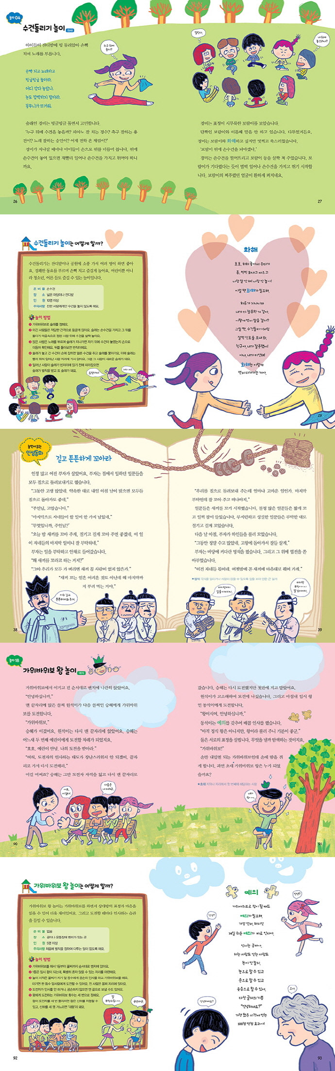 Çùµ¿½É, Àڽۨ, Àγ»·Â, ¸®´õ½Ê, Ã¥ÀÓ°¨, ¿¹ÀÇ, ¼ÒÅë, ¹è·Á µîÀÇ Àμº °¡Ä¡¸¦ 24°¡ÁöÀÇ ³îÀÌÀÇ ¼ø°£°ú ÇÔ²² Ç®¾î³Â½À´Ï´Ù. Á¦±âÂ÷±â, ¼û¹Ù²ÀÁú, ÆØÀÌÄ¡±â, ÀÚÄ¡±â¿Í °°Àº ÀüÅë³îÀ̸¦ ºñ·ÔÇØ, ³ª´Â ´©±¸ÀÏ±î ³îÀÌ, ¿ôÀ½ ³îÀÌ, ¼Ó´ã ¹«¾ð±Ø ³îÀÌ, Çູ ã±â ³îÀÌ µî âÀÇÀûÀÎ ³îÀ̸¦ ´Ù¾çÇÏ°Ô ±¸¼ºÇß½À´Ï´Ù. ³îÀ̸¦ ©¸·ÇÑ À̾߱â·Î µé·ÁÁÖ°í, ¡®¾î¶»°Ô ÇÒ±î?¡¯¿¡¼ ³îÀÌÇÏ´Â ¹æ¹ýÀ» ½¬¿î ±Û°ú ±×¸²À¸·Î ¼³¸íÇß¾î¿ä. µÚ¿¡´Â ³îÀ̸¦ ÅëÇØ ÀÚ¿¬½º·´°Ô ´À³¢°í °æÇèÇÏ´Â Àμº ´ö¸ñÀÌ ¹«¾ùÀÎÁö µ¿½Ã·Î Ç¥ÇöÇß½À´Ï´Ù. ¶ÇÇÑ ¡®³î¸é¼ Àд Àμºµ¿È¡¯¸¦ ÀÐÀ¸¸ç ¾ÆÀ̵鿡°Ô ±íÀº ±ú´ÞÀ½À» ÁÖÁö¿ä.