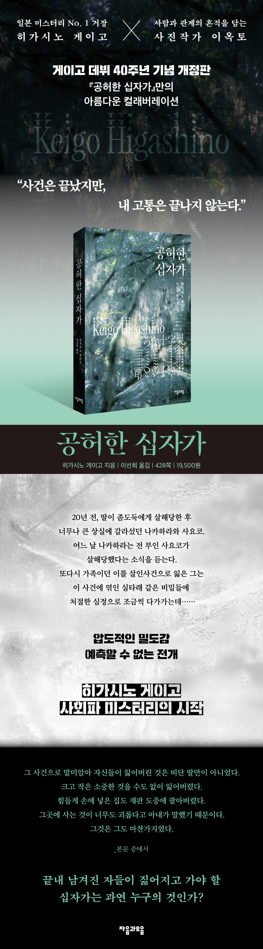 ¡º°øÇãÇÑ ½ÊÀÚ°¡¡»´Â ´Ü¼øÈ÷ ¹üÁËÀÇ µ¿±â¿Í ¹üÀÎÀ» ¹àÈ÷´Â ¹Ì½ºÅ͸®°¡ ¾Æ´Ï´Ù. ÀÌ ¼Ò¼³Àº Àΰ£ÀÌ Àΰ£À» ½ÉÆÇÇÑ´Ù´Â °ÍÀÇ Àǹ̸¦ ³¡±îÁö ¹Ð¾îºÙÀδÙ. Á¤ÀǶõ ¹«¾ùÀ̸ç, º¹¼ö´Â ¾îµð¼ ³¡³ª´Â°¡. ¼ÓÁË´Â °¨¿Á¿¡¼ÀÇ ½Ã°£ÀÌ ¾Æ´Ï¶ó¸é ¾î¶² ¹æ½ÄÀ¸·Î °¡´ÉÇѰ¡. ±×¸®°í ³¡³» ³²°ÜÁø ÀÚµéÀÌ Áû¾îÁö°í °¡¾ß ÇÒ ½ÊÀÚ°¡´Â °ú¿¬ ´©±¸ÀÇ °ÍÀΰ¡.
