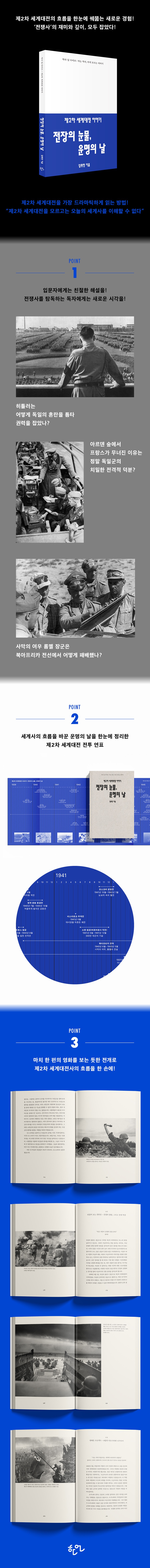 È÷Ʋ·¯°¡ ¾î¶»°Ô µ¶ÀÏÀÇ È¥¶õÀ» ƴŸ ±Ç·ÂÀ» Àâ¾Ò´ÂÁö, ¾Æ¸£µ§ ½£¿¡¼ ÇÁ¶û½º°¡ ¹«³ÊÁø ÀÌÀ¯°¡ Á¤¸» µ¶ÀϱºÀÇ Ä¡¹ÐÇÑ Àü°ÝÀü ´öÀ̾ú´ÂÁö, °Åµì ÀüÀåÀÇ Àü¼³À» ½á³»·Á°¡´ø »ç¸·ÀÇ ¿©¿ì ·Ò¸á À屺ÀÌ ºÏ¾ÆÇÁ¸®Ä« Àü¼±¿¡¼ ¾î¶»°Ô ÆÐ¹èÇß´ÂÁö, õȲÀÇ °á´ÜÀ¸·Î ÀüÀïÀÇ Á¾ÁöºÎ¸¦ Âï°Ô µÇ¾ú´Ù´Â ÀϺ»ÀÇ ½ÅȰ¡ ¾î¶»°Ô ź»ýÇß´ÂÁö µî Á¦2Â÷ ¼¼°è´ëÀüÀÇ °áÁ¤Àû ¼ø°£µéÀ» ÀÔüÀûÀ¸·Î Á¶¸íÇÑ´Ù. ¶Ç ÁøÁÖ¸¸ °ø½À°ú ¹Ìµå¿þÀÌ ÇØÀü, ³ë¸£¸Áµð »ó·úÀÛÀü(D-Day)°ú ½ºÅ»¸°±×¶óµå ÀüÅõ µî, ¼¼°è»çÀÇ È帧À» ¹Ù²Û ÀüÀåÀÇ ¸íÀå¸éµéÀÌ ¸¶Ä¡ ÇöÀå¿¡ ÀÖ´Â µí ½Ç°¨³ª°Ô ÆîÃÄÁø´Ù. ÀÌ Ã¥À» ÅëÇØ µ¶ÀÚµéÀº ´Ü¼øÇÑ ÀüÅõÀÇ ³ª¿ÀÌ ¾Æ´Ï¶ó, ÀüÀïÀÌ ¸¸µé¾î³½ ÀηùÀÇ ¼±Åðú ºñ±Ø, ±×¸®°í ±× ¼Ó¿¡¼ ÇÇ¾î³ Èñ¸Á±îÁö ¡®ÁøÂ¥¡¯ ¿ª»çÀÇ ÇöÀåÀ» °æÇèÇÏ°Ô µÈ´Ù.