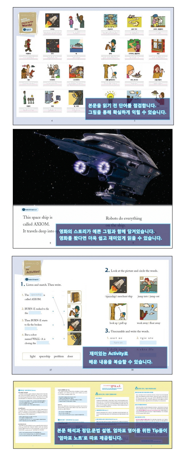 ¡ºWALL E¡»´Â ¡¸¾ö¸¶Ç¥ ¸®µù ½ºÅ¸ÅÍ¡¹ ¿©´ü¹øÂ° ½Ã¸®Áî·Î, ¸¸È¿µÈ ¿ù¤ýEÀÇ ³»¿ëÀ¸·Î ±â¹ÝÀ¸·Î ÇÑ ¸ÂÃãÇü ¿µ¾î µ¿È´Ù. ¿µÈÀÇ Ä³¸¯ÅͰ¡ ±×´ë·Î µîÀåÇÏ¿© ¾ÆÀÌ¿¡°Ô ¿µ¾î¿¡ ´ëÇÑ Èï¹Ì¸¦ ³ô¿©ÁÖ°í, ¾îÈÖ È®ÀÎÇϱâ¿Í ´Ù¾çÇÑ ¾×ƼºñƼ¸¦ ÅëÇØ ÇнÀÈ¿°ú¸¦ ¾ò´Â´Ù. Ã¥ µÚ¿¡ ÀÖ´Â '¾ö¸¶Ç¥ ³ëÆ®'¿¡¼´Â ¾ö¸¶µéÀÌ ¾ÆÀ̵é°ú ÇÔ²² ¿µ¾î¸¦ ÁøÇàÇÒ ¼ö ÀÖµµ·Ï ´Ù¾çÇÑ ÆÁÀ» Á¦°øÇÑ´Ù.