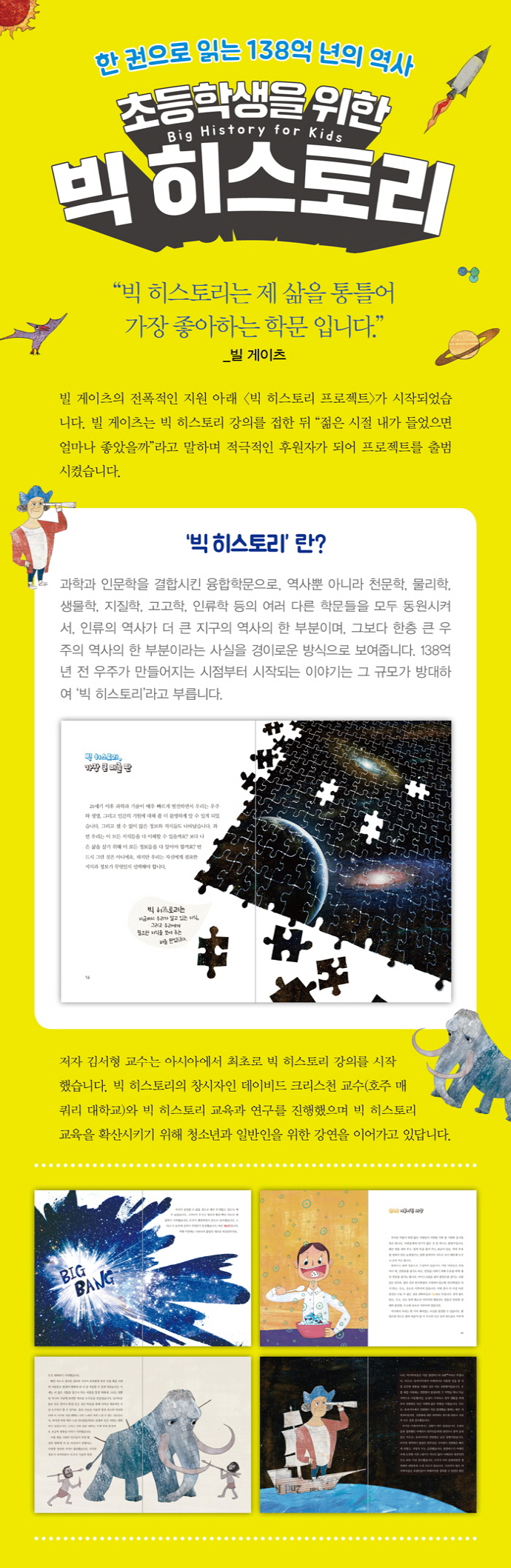 Ã¥¼Ò°³ÇÑ ±ÇÀ¸·Î Àд 138¾ï ³âÀÇ ¿ª»ç. ±è¼ÇüÀÇ ¡ºÃʵîÇлýÀ» À§ÇÑ ºò È÷½ºÅ丮¡»´Â ÃʵîÇлýÀÇ ´«³ôÀÌ¿¡¼ ºò È÷½ºÅ丮¸¦ Ä£ÀýÇÏ°Ô Ç®¾î³½ Ã¥ÀÌ´Ù. ºò¹ð, ¿ø¼ÒÀÇ Åº»ý, žç°èÀÇ Åº»ý, Áö±¸ÀÇ Åº»ý, »ý¸íÀÇ ±â¿ø, ÀηùÀÇ µîÀå, ¹®¸íÀÇ Åº»ý, ³×Æ®¿öÅ©ÀÇ µîÀå, »ê¾÷ÀÇ ¹ß´Þ µî ºò¹ð¿¡¼ºÎÅÍ ¹Ì·¡±îÁö ¿ª»çÀûÀ¸·Î ÀÇ¹Ì ÀÖ´Â »ç°ÇÀ» Å« ±×¸²À¸·Î º¸¿©ÁØ´Ù. ºò È÷½ºÅ丮°¡ ¹«¾ùÀÎÁö ±Ã±ÝÇØÇÏ´Â ¾î¸°À̵鿡°Ô ºò È÷½ºÅ丮ÀÇ ÇÙ½ÉÀ» ¾Ë·ÁÁÖ´Â ºò È÷½ºÅ丮 ÀÔ¹®¼. ¿ìÁÖ¿Í ÀÚ¿¬, Àΰ£ÀÇ ¿ª»ç¸¦ ÇϳªÀÇ Å©³ªÅ« À̾߱â·Î ¿«¾î³ÂÀ¸¸ç, ¾î¸°À̵é·Î ÇÏ¿©±Ý ¿ìÁÖ ¼ÓÀÇ Áö±¸, Áö±¸ ¼ÓÀÇ Àηù, Àηù ¼ÓÀÇ ¡®³ª¡¯¸¦ »ý°¢Çغ¸´Â ±âȸ¸¦ ´øÁ®ÁÙ °ÍÀÌ´Ù.