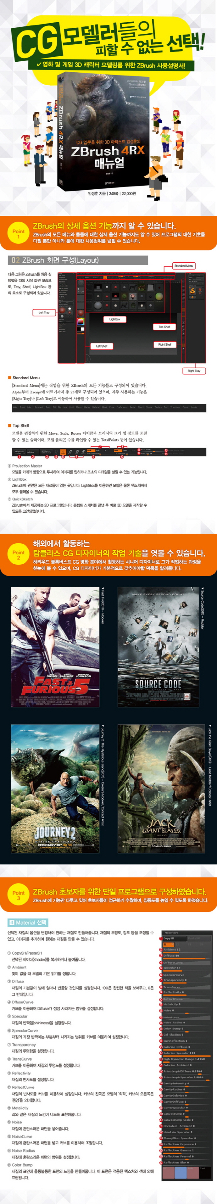 Ã¥¼Ò°³[CG ÀÔ¹®À» À§ÇÑ 3D ¾ÆÆ¼½ºÆ® ÀÓ¼ºÈÆÀÇ ZBrush 4RX ¸Å´º¾ó]±â´É ÇϳªÇϳª¸¦ ¼¼úÇÏ¿© Àß »ç¿ëÇÏÁö ¾Ê´Â ±â´É±îÁöµµ ±Ã±ÝÁõÀ» ÇØ°áÇÒ ¼ö ÀÖµµ·Ï ±¸¼ºÇØ ZBrushÀÇ ±âÃʸ¦ ´õ¿í ưưÇÏ°Ô ´ÙÁú ¼ö ÀÖµµ·Ï µµ¿ÍÁִ åÀÌ´Ù. Ã¥Àº CG ÀÔ¹®ÀÚ, ZBrushÀÇ ±âÃʸ¦ ´ÙÁö°í ½ÍÀº Ãʺ¸ÀÚ, 3D ij¸¯ÅÍ ºÐ¾ß Ãë¾÷ Èñ¸ÁÀÚ, ¿µÈ ¹× °ÔÀÓ ºÐ¾ß Àü°øÀÚ, ´Ù¾çÇÑ ºÐ¾ßÀÇ µðÀÚÀÌ³Ê µî¿¡°Ô µµ¿òÀ» ÁÙ °ÍÀÌ´Ù. Ã¥À» ÅëÇØ ZBrushÀÇ »ó¼¼ ¿É¼Ç ±â´É, ÇØ¿Ü¿¡¼ Ȱµ¿Çϴ žŬ¶ó½º CG µðÀÚÀ̳ÊÀÇ ÀÛ¾÷ ±â¼úÀ» ¿³º¼ ¼ö ÀÖµµ·Ï Çß°í, ZBrush Ãʺ¸ÀÚ¸¦ À§ÇÑ ´ÜÀÏ ÇÁ·Î±×·¥À¸·Î ±¸¼ºÇϰí ÀÖ´Ù.