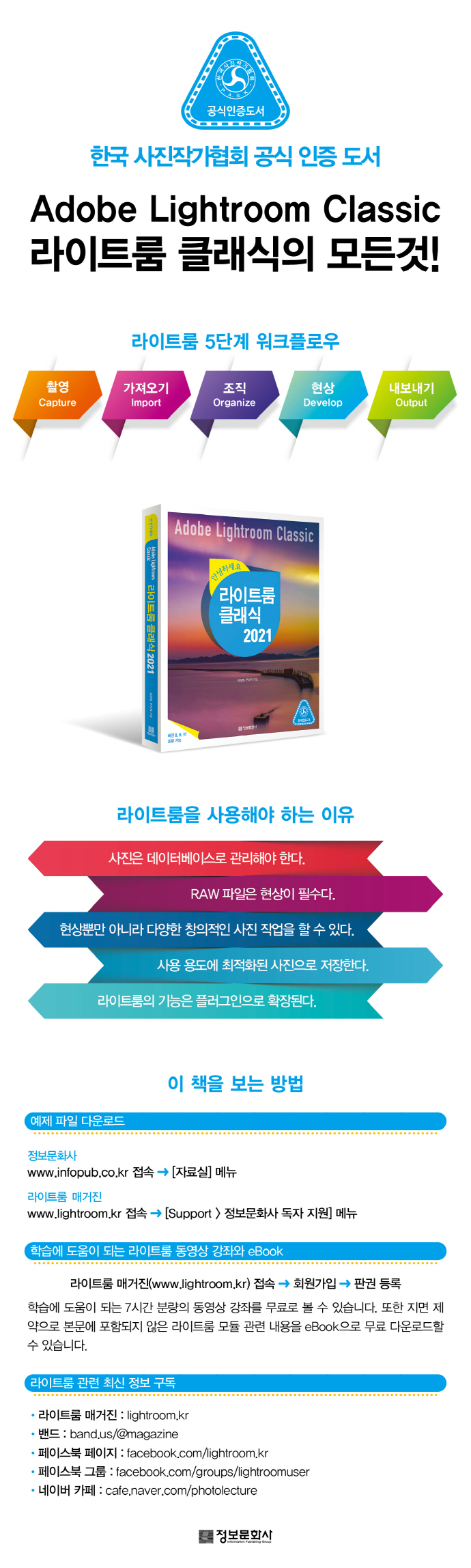 ÀÌ Ã¥Àº ¶óÀÌÆ®·ëÀ̶ó´Â ÇÁ·Î±×·¥ÀÌ °¡Áö°í Àִ Ư¼º°ú ±âº» Áö½ÄºÎÅÍ ¼³Ä¡¿Í Ȱ¿ë±îÁö ÇÑ ±ÇÀ¸·Î ¹è¿ï ¼ö ÀÖµµ·Ï ±¸¼ºµÇ¾î ÀÖ´Ù. Ãʺ¸ÀÚ¸¦ À§ÇÑ ÀÔ¹®¼·Î ÃÑ ´Ù¼¸ °³ÀÇ ÆÄÆ®·Î ÀÌ·ç¾îÁ® ÀÖ´Ù. ÆÄÆ® 1 ¡®¶óÀÌÆ®·ë °³¿ä¡¯¿¡¼´Â Æ÷Åä¼¥°ú´Â ´Ù¸¥ ¶óÀÌÆ®·ë¸¸ÀÇ Æ¯Â¡À» ¼³¸íÇϰí, ¶óÀÌÆ®·ëÀÇ ¼³Ä¡¿Í ±âº» ȯ°æ ¼³Á¤, ÀÎÅÍÆäÀ̽º ±¸¼ºÀ» »ìÆìº»´Ù. ÆÄÆ® 2 ¡®»çÁø °¡Á®¿À±â¡¯¿¡¼´Â īŻ·Î±×¿Í »çÁø °¡Á®¿À±â¿¡ ´ëÇÑ °³³äÀ» ÀÌÇØÇϰí, īŻ·Î±×ÀÇ »ý¼ººÎÅÍ µî·ÏµÈ »çÁøÀ» °ü¸®ÇÏ´Â ¹æ¹ýÀ» ¾Ë¾Æº»´Ù. ÆÄÆ® 3 ¡®»çÁø °ü¸®Çϱ⡯¿¡¼´Â »çÁøÀ» º¸´Â ´Ù¾çÇÑ ¹æ¹ý°ú ¿©·¯ °¡Áö Á¤º¸ ¹× »çÁøÀ» ºÐ·ùÇÏ´Â ¹æ¹ý µî¿¡ ´ëÇØ ¹è¿î´Ù. ÆÄÆ® 4 ¡®µðÁöÅÐ Çö»óÇϱ⡯¿¡¼´Â À̹ÌÁö ÇÁ·Î¼¼½º¿Í ÇÁ·ÎÆÄÀÏ, ±¸µµÀÇ º¸Á¤, ÈÀÌÆ® ¹ë·±½ºÀÇ ±³Á¤, Åæ º¸Á¤, »ö º¸Á¤ µî ¶óÀÌÆ®·ëÀÇ È°¿ëÀ» ¾È³»ÇÑ´Ù. ¸¶Áö¸· ÆÄÆ® 5 ¡®³»º¸³»±â¡¯¿¡¼´Â ¶óÀÌÆ®·ë¿¡¼ Çö»óÇÑ »çÁøÀ» º°µµÀÇ ÆÄÀÏ·Î ÀúÀåÇÏ´Â ¿©·¯ ¹æ¹ý¿¡ ´ëÇØ ´Ù·é´Ù. ÀúÀÚÀÇ ²Ä²ÄÇÏ°í ¼¼¼¼ÇÑ ¼³¸íÀ» ÅëÇØ ¶óÀÌÆ®·ë ÀÔ¹®ÀÚµµ óÀ½ºÎÅÍ ³¡±îÁö ¸ðµç °úÁ¤À» µû¶ó¿À±â ¼ö¿ùÇÏ°Ô ¸¸µé¾îÁ³´Ù. ÀÌ Ã¥À» ¸¶½ºÅÍÇÑ´Ù¸é ¶óÀÌÆ®·ëÀ» ´Ù·ç´Â ½Ç·Â Çâ»óÀº ¹°·Ð »çÁø¿¡ ´ëÇÑ ÀÌÇØ ¿ª½Ã ³ôÀº ¼öÁØÀ» °¡Áú ¼ö ÀÖ°Ô µÉ °ÍÀÌ´Ù.
