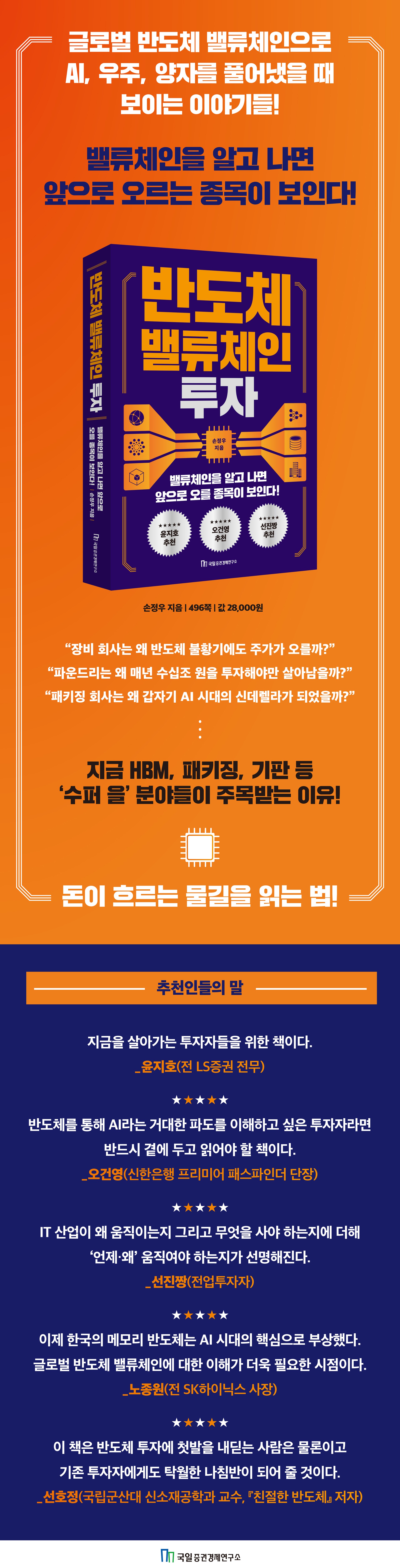 ±Û·Î¹ú ¹ÝµµÃ¼ ¹ë·ùüÀÎÀ» ±â¹ÝÀ¸·Î AI ¹× ¿ìÁÖ¿Í ¾çÀÚ ½Ã´ë±îÁö °¡´ÆÇØ º¸´Â Ã¥ÀÌ´Ù. ´Þ¸® ¸»ÇÏ¸é ¹ÝµµÃ¼¸¦ Áß½ÉÀ¸·Î »ê¾÷À» ¿¬°á Áö¾î ¾ÕÀ¸·ÎÀÇ ±â¼ú È帧À» Àд åÀÌ´Ù. ÀúÀÚ´Â ÇöÀç ÁÖ¸ñ¹Þ´Â ¼ÒºÎÀå(¼ÒÀç, ºÎǰ, Àåºñ) ¿Ü¿¡µµ ÆÕ¸®½º, ÆÄ¿îµå¸®, ¸Þ¸ð¸®, ÆÐŰ¡, Àü·Â¹ÝµµÃ¼ µî ¹ÝµµÃ¼ ¹ë·ùüÀÎÀ» »ó¼¼È÷ ¼Ò°³ÇÏ´Â µ¿½Ã¿¡ AI(ƯÈ÷ ÃÖ±Ù¿¡ ¿£ºñµð¾Æ CEOÀÎ Á¨½¼ ȲÀÌ °Å·ÐÇÑ ÇÇÁöÄà AI)¿Í ¿ìÁÖ, ¾çÀÚ°¡ µµ´ÞÇÒ ¹Ì·¡¸¦ ÈĹݺο¡ ÁýÁßÀûÀ¸·Î ±×¸°´Ù. ´õºÒ¾î ¡°¸ðµç »ê¾÷Àº ¹ÝµµÃ¼·Î ¿¬°áµÇ¾î ÀÖ´Ù¡±´Â ¼ÕÁ¤¿ì ±Û·Î¹ú ¹ÝµµÃ¼ »ê¾÷ºÐ¼® Àü¹®°¡ÀÇ ¸»¸¶µû³ª ¹ÝµµÃ¼¿Í AI ±×¸®°í ¿ìÁÖ, ¾çÀÚ°¡ ¼·Î ¾ó¸¶³ª ¹ÐÁ¢ÇÏ°Ô ¿¬°üµÇ¾î ÀÖ´ÂÁö¸¦ ¼³¸íÇÑ´Ù.