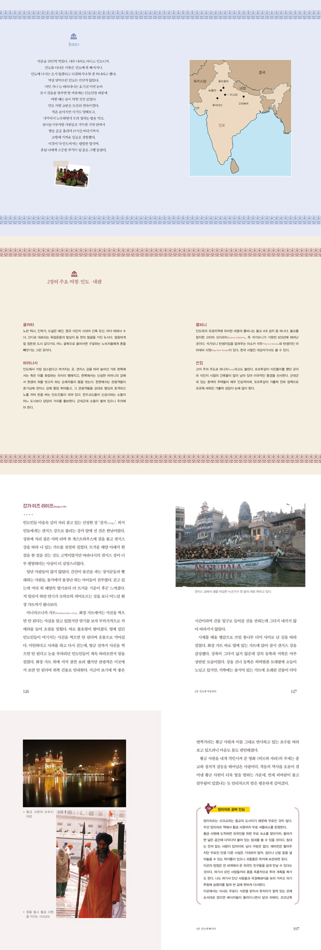 Ã¥¼Ò°³¡º³ª´Â Àεµ¿¡¼ ÀλýÀ» ¹è¿ü´Ù¡»´Â °¡ÀÌµå ¾øÀÌ ¹è³¶ Çϳª¸¸ ¸Þ°í Àεµ °÷°÷À» Á¾È¾¹«Áø ´©ºó 100% ¸®¾ó ¿©Çà±â´Ù. ´Ù¸¥ ¿©Çà ¿¡¼¼ÀÌó·³ Àεµ ¿©Çà ÈÄ ´À³¤ °¨»óÀ» ´Ü¼øÈ÷ ½á³»·Á°¡´Â °Í¿¡ ±×Ä¡Áö ¾Ê°í, ÀεµÀÇ °è±ÞÁ¦µµ¿Í Àεµ ³» ¿©¼ºÀÇ ÁöÀ§, À½½Ä¹®È, Àεµ¿¡¼ Åýà Ÿ´Â ¹æ¹ý, ¸í¼Ò °¨»ó¹ý µî ¿©Çà½Ã ¾Ë¾ÆµÎ¸é ÁÁÀ» ¸¸ÇÑ ÆÁµéÀ» ´ã¾Æ ³»¿ëÀ» dzºÎÇÏ°Ô ±¸¼ºÇß´Ù. ¶Ç °¢ À帶´Ù ¹æ¹®ÇÑ ÁÖ¿ä µµ½ÃÀÇ À§Ä¡¸¦ Áöµµ¿¡ Ç¥½ÃÇϰí, ±× µµ½Ã¿¡ ´ëÇØ °£·«ÇÏ°Ô ¼Ò°³ÇØÁÖ¾î °¢°¢ÀÇ µµ½Ã°¡ °¡Áö°í Àִ Ư¡À» ½±°Ô ¾Ë ¼ö ÀÖ°Ô Çß´Ù. ÀÌ Ã¥Àº Àεµ ¿©ÇàÀ» ¾ÕµÐ »ç¶÷µé»Ó ¾Æ´Ï¶ó °ü½ÉÀº ÀÖÁö¸¸ È£ºÒÈ£°¡ °ÇÑ ¿©ÇàÁö¶ó´Â ¸» ¶§¹®¿¡ ¼±¶æ ¶°³ªÁö ¸øÇÏ´Â »ç¶÷µé, ÀÏ»óÀÇ ¿©À¯°¡ ¾ø¾î ¿©ÇàÀ» °¡Áö ¸øÇÏ´Â »ç¶÷µé ¸ðµÎ µ¶ÀÚ°¡ µÉ ¼ö ÀÖ´Ù.