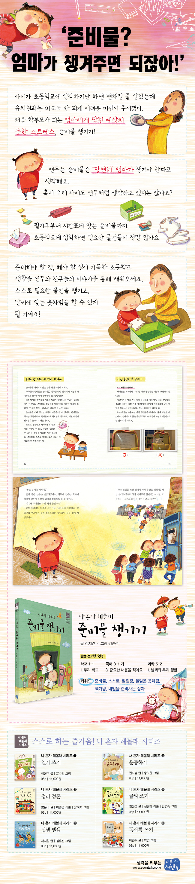 Ã¥¼Ò°³¡º³ª È¥ÀÚ ÇØº¼·¡ Áغñ¹° ì±â±â¡»´Â À̾߱⸦ ÅëÇØ ¾ÆÀ̵éÀÌ ½º½º·Î Áغñ¹°À» ì±æ ¼ö ÀÖµµ·Ï µµ¿ÍÁÝ´Ï´Ù. ¶ÇÇÑ ÀÚ±âÁÖµµÇнÀÀÌ ¹«¾ùÀÎÁö Á÷Á¢ ÇØº¸°í, ÀÚ±âÁÖµµÇнÀ ½À°üÀ» °¡Áú ¼ö ÀÖµµ·Ï µµ¿ÍÁÖ¸ç, ½º½º·Î ¸ñÇ¥¸¦ ¼¼¿ì°í ½ÇõÇÏ°í °á°ú¸¦ Æò°¡ÇÒ ¼ö ÀÖµµ·Ï ±¸¼ºÇß½À´Ï´Ù. Ã¥ ¼ÓÀÇ ÁÖÀΰøÀÎ ¹ü¼®ÀÌ¿Í ´Ù¶÷À̰¡ ¾Ë·Á ÁØ ¹æ¹ýÀ¸·Î Áغñ¹°À» ì°Üº¸¼¼¿ä.