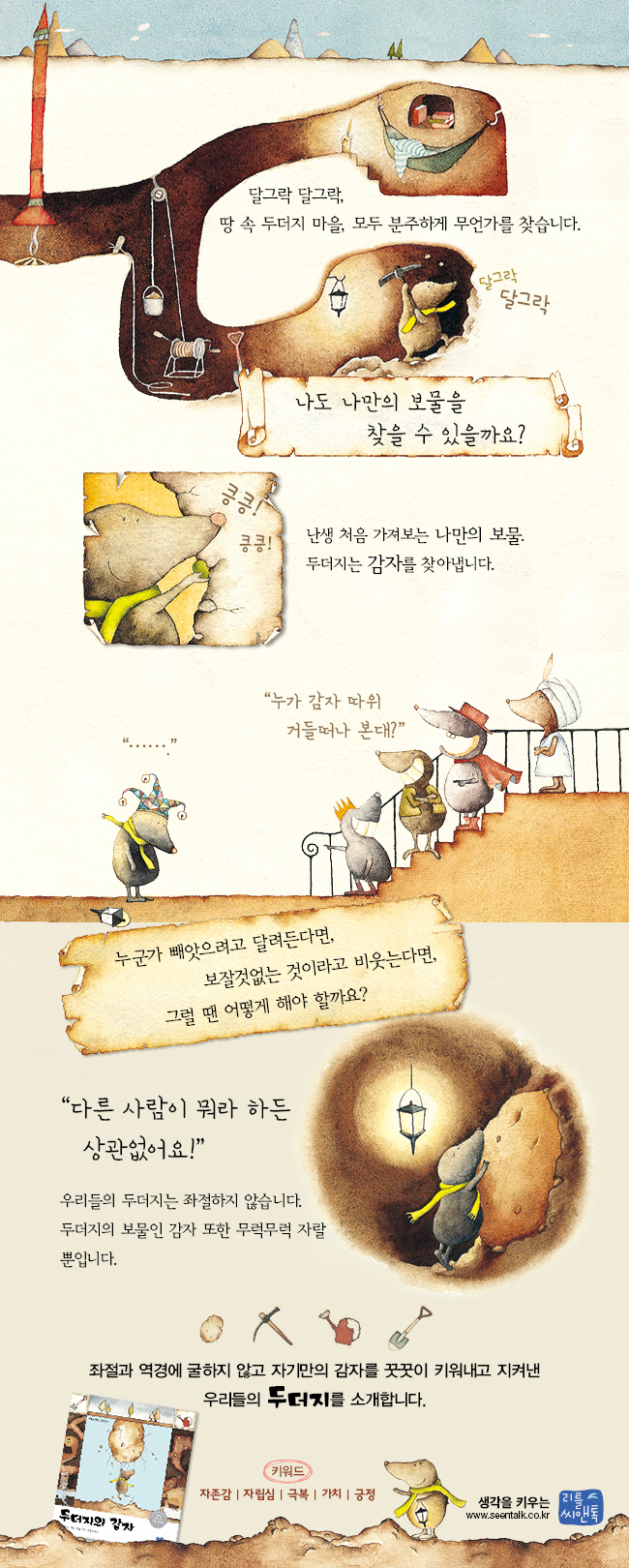 ÇÏ·ç Á¾ÀÏ ½¬Áö ¾Ê°í ¶¥À» ÆÄ´Â µÎ´õÁöµé. µÎ´õÁö ¾Æ°¡¾¾¿¡°Ô º¸¿©ÁÙ º¸¹°À» ã°í ÀÖ½À´Ï´Ù. ¾î´À µÎ´õÁö´Â Ȳ±ÝÀ» ã°í ¾î´À µÎ´õÁö´Â ¼®À¯¸¦ ã½À´Ï´Ù. ±×¸®°í ¿ì¸®ÀÇ ÁÖÀΰø µÎ´õÁö´Â ÀÛÀº °¨ÀÚ ÇÑ ¾ËÀ» ¹ß°ßÇÕ´Ï´Ù. ³²µé ´«¿¡ º¸À߰;ø´Â ÀÌ °¨ÀÚµµ, µÎ´õÁö¿¡°Ô¸¸Àº ÃÖ°íÀÇ º¸¹°ÀÔ´Ï´Ù.