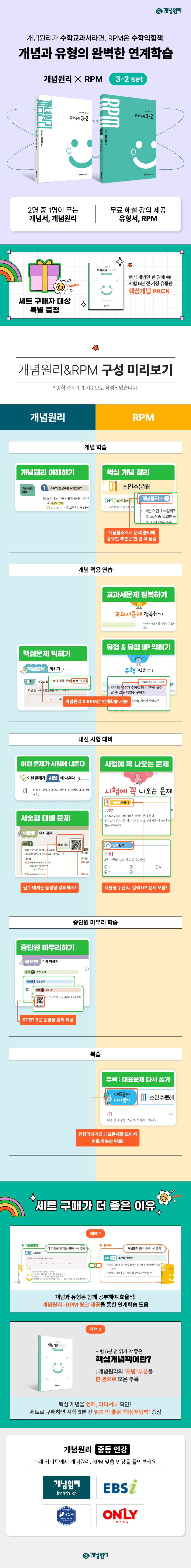 - ±¸¼º : °³³ä¿ø¸® ÁßÇÐ ¼öÇÐ 3-2 + RPM ÁßÇÐ ¼öÇÐ 3-2 + Çٽɰ³³äÆÑ ÁßÇÐ ¼öÇÐ 3-2