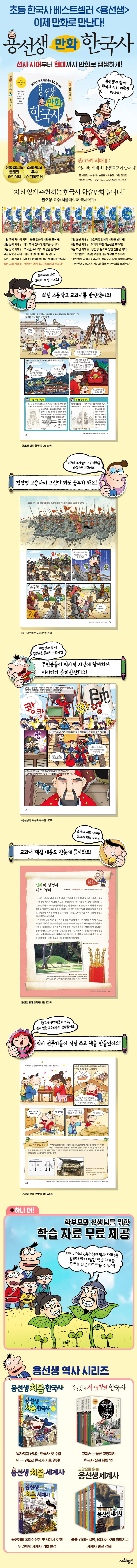 ¡º¿ë¼±»ý ¸¸È Çѱ¹»ç¡»´Â ¡¶¿ë¼±»ýÀÇ ½Ã²ø¹÷Àû Çѱ¹»ç¡·ÀÇ Ä³¸¯Å͵éÀÌ °ú°Å·Î ½Ã°£ ¿©ÇàÀ» ¶°³ª ´Ù¾çÇÑ ¿ª»çÀû »ç°Ç¿¡ Á÷Á¢ Âü¿©ÇÏ¸é¼ ¹ú¾îÁö´Â Èï¹ÌÁøÁøÇÑ À̾߱â´Ù. ¾ÆÀ̵éÀº ¸¶¹ý ¿¬Ç¥¸¦ Ÿ°í °ú°Å·Î µ¹¾Æ°¡ ´Ù¾çÇÑ »ç°Ç¿¡ ÈÖ¸»¸®¸ç À̸¦ ÇØ°áÇØ ³ª°¡´Âµ¥, ±× °úÁ¤¿¡¼ ÀÚ¿¬½º·´°Ô ¿ì¸® ¿ª»ç¸¦ ÀÍÈú ¼ö ÀÖ°Ô µÈ´Ù. ¸¸È ¼Ó¿¡ ±×·ÁÁö´Â °ø°£°ú ¼ÒǰµéÀ» ½Ã´ë¿¡ ¸Âµµ·Ï ÃÖ´ëÇÑ Ã¶ÀúÈ÷ °íÁõÇÏ¿© ¿ª»çÀû »ç½Ç¿¡ ºÎÇÕÇÏ´Â ±×¸²ÀÌ µÇµµ·Ï ³ë·ÂÇß´Ù. À̹ø 6±Ç¿¡¼´Â ¹«½Å Á¤º¯ °úÁ¤°ú ÃÖ¾¾ Á¤±ÇÀÇ ¼º¸³, ¸ù°ñ°úÀÇ ÀüÀï°ú ±× ÀÌÈÄÀÇ ¿ø°£¼·±â, °í·ÁÀÇ °úÇÐ ±â¼ú°ú ¹®È, ±×¸®°í °ø¹Î¿ÕÀÇ °³Çõ°ú °í·Á¸»ÀÇ À§±â¿Í »õ·Î¿î ¼¼·ÂÀÇ ¼ºÀå±îÁö ´Ù·ç°í ÀÖ´Ù.