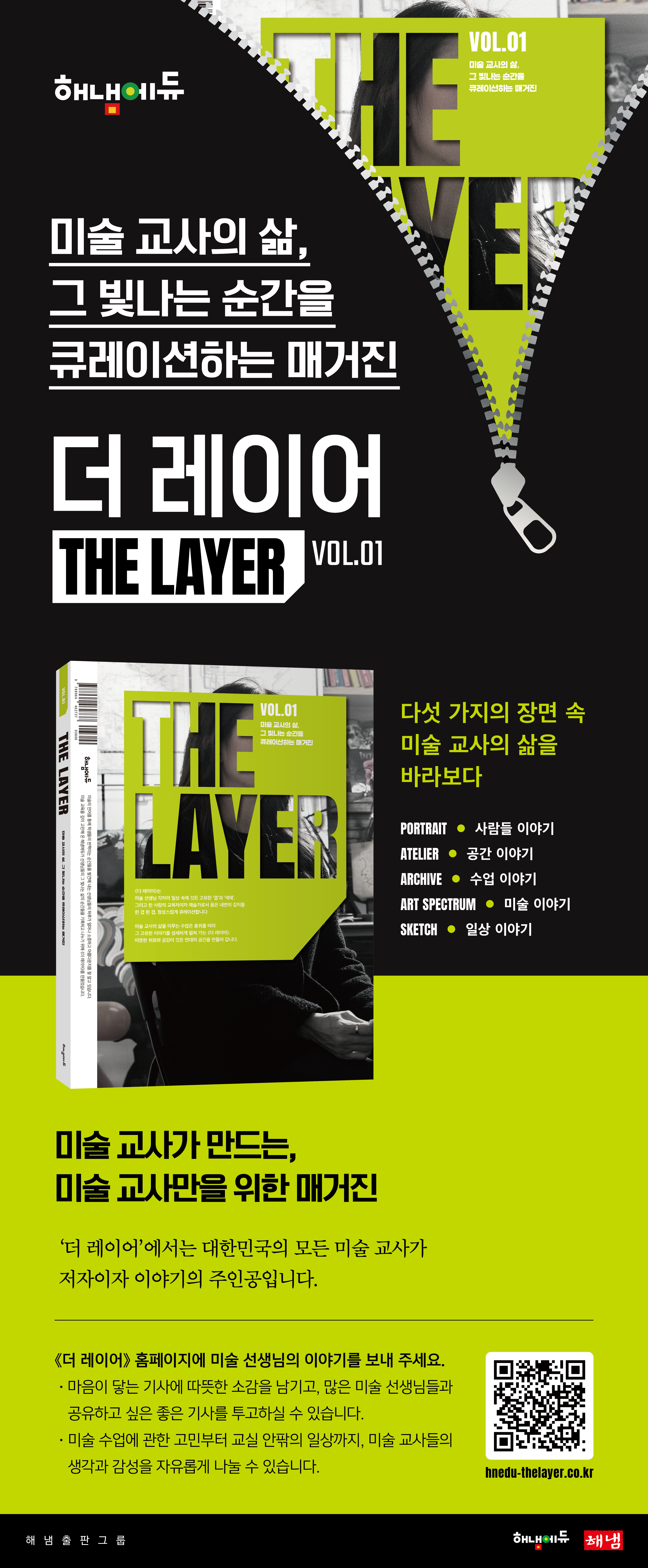 ±× °áµéÀ» ÇÑ °ã ÇÑ °ã, ¼¶¼¼ÇÏ°Ô Å¥·¹À̼ÇÇÏ´Â ¸Å°ÅÁø, ¡¶´õ ·¹À̾î(The Layer)¡·ÀÔ´Ï´Ù. ¹Ì¼úÀÇ ¾ð¾î¸¦ ÅëÇØ ÇлýµéÀÇ ¹Ý¦ÀÌ´Â ¼ø°£µéÀ» ¹ß°ßÇØ ³»´Â ¼±»ý´ÔµéÀÇ ÇÏ·ç°¡ ¾ó¸¶³ª ¼ÒÁßÇÏ°í ¾Æ¸§´Ù¿îÁö Àß ¾Ë°í ÀÖ½À´Ï´Ù. ÀÌ·¯ÇÑ ¸¶À½À¸·Î ¼±»ý´ÔµéÀÇ ±× ºû³ª´Â »îÀÇ ¼ø°£µéÀ» ±â·ÏÇϱâ À§ÇØ ¡¶´õ ·¹À̾¸¦ ¸¸µé¾ú½À´Ï´Ù. °¢ÀÚÀÇ ±³½Ç¿¡¼ ½×¿© ¿Â °í¹Î°ú »ý°¢, ÀÛÀº ¼ö¾÷ ¾ÆÀ̵ð¾î¿¡¼ ºñ·ÔµÈ ±â»Ý°ú ÁÂÀý, »î°ú ¿¹¼úÀÌ ¸Â´ê´Â ¼ø°£ÀÇ ¶³¸²µé, ¹Ì¼ú ±³»çÀÇ ¿¹¼úÀû °¨¼ºÀÌ ±êµç ÀÏ»óÀÇ ÀÛÀº ¼ø°£µé±îÁö, ¡¶´õ ·¹À̾´Â ¹Ì¼ú ±³»çÀÇ ÇÏ·ç¿¡ ±êµç ÀÏ»óÀÇ ¿Âµµ¸¦ ¼¶¼¼ÇÏ°Ô ±â·ÏÇÕ´Ï´Ù. À̰÷¿¡¼´Â ´ëÇѹα¹ÀÇ ¸ðµç ¹Ì¼ú ±³»ç°¡ ÀúÀÚÀÌÀÚ À̾߱âÀÇ ÁÖÀΰøÀÔ´Ï´Ù. ¼±»ý´ÔµéÀÇ »îÀ» ÀÌ·ç´Â ¿©·¯ °ãÀÇ ·¹À̾ À̰÷¿¡¼ Çϳª·Î ¾î¿ï·Á Ưº°ÇÑ »öä·Î ºû³³´Ï´Ù. ¹Ì¼ú ±³»ç·Î¼ÀÇ °æÇèÀ» ³ª´©¸ç ¼·Î¿¡°Ô °ø°¨Çϰí ÇÔ²² ¼ºÀåÇØ °¡´Â µû¶æÇÑ ¿¬´ëÀÇ °ø°£. ¡¶´õ ·¹À̾°¡ ¼±»ý´Ôµé °ç¿¡¼ ÀÛÀº À§·Î¿Í ¿µ°¨ÀÌ µÇ±â¸¦ ¹Ù¶ø´Ï´Ù. - 2ÂÊ(¡¶´õ ·¹À̾ ÆíÁýÀåÀÇ ¸») ¡®¹Ì¼ú ±³»ç´Â ÆíÇϰڳ×.¡¯, ¡®¾Öµé ±×¸² ±×¸®¶ó°í ÇÏ¸é µÇ´Ï±î ¼ö¾÷ Áغñ ¾È ÇØµµ µÇÁö ¾Ê¾Æ?¡¯ °°Àº ¸»À» µéÀ» ¶§¸¶´Ù ¹Ì¼ú ±³»ç·Î¼ÀÇ Ã¥ÀÓÀ» Áõ¸íÇØ¾ß ÇÑ´Ù´Â °¹Ú¿¡ ½Ã´Þ¸®±âµµ Çß¾î¿ä. ÇÏÁö¸¸ ¾î´À ¼ø°£ ±ú´Þ¾Ò¾î¿ä. ³ª¸¦ Áõ¸íÇÏ´Â °ÍÀº µ¿·á ±³»ç°¡ ¾Æ´Ï¶ó, ³ª¿Í ÇÔ²²ÇÏ´Â ÇлýµéÀ̶ó´Â °ÍÀ»¿ä. ¾ÆÀ̵éÀÌ Áñ°Ì°Ô ¹Ì¼ú Ȱµ¿¿¡ ÁýÁßÇϸç ÀÛǰÀ» ÅëÇØ ÀÚ½ÅÀÇ À̾߱⸦ ´ã¾Æ³¾ ¶§, ±× ¼Ó¿¡¼ ¹Ì¼ú ±³»çÀÇ °¡Ä¡°¡ Áõ¸íµÈ´Ù´Â °ÍÀ»¿ä. - 16ÂÊ(Ãâ¹ß¼±ÀÇ ¶³¸², ±× ¾Õ¿¡¼ ¸¶ÁÖÇÑ ¸»µé: 22³â Â÷ ¹Ì¼ú ±³»ç, ÀÎõ°úÇп¹¼ú¿µÀçÇб³ ±èÀºÁÖ) ¡´°¡Á·ÀÇ ½ÄŹ¡µ ¼ö¾÷Àº ¿Â¶óÀÎ ¼ö¾÷ ´ö¿¡ ¿ì¿¬È÷ ½ÃÀÛÇß´ø ¼ö¾÷ÀÌ¿¡¿ä. Á¦°¡ À̰÷¿¡ óÀ½ ¹ß·É¹Þ¾ÒÀ» ¶§´Â Äڷγª ½Ã±â¿´°í, ¿Â¶óÀÎ ¼ö¾÷°ú Çб³ ¼ö¾÷ÀÌ º´ÇàµÇ´ø »óȲÀ̾ú¾î¿ä. Á¤¹°È ¼ö¾÷À» ÇØ¾ß Çߴµ¥, ¿Â¶óÀÎ ¼ö¾÷ ÁßÀ̾ú±â¿¡ ¾ÆÀ̵鿡°Ô ³ÃÀå°í¿¡¼ ±×¸± ¹°°ÇÀ» Çϳª¾¿ ²¨³» ¿À¶ó°í ÇßÁÒ. ±×·±µ¥ È¸é ¼Ó ´ÙÁßÀÇ °ÝÀÚ ¾È¿¡¼ Àü ¼¼°è °¢±¹ÀÇ ´Ùä·Î¿î ¹°°ÇµéÀÌ ¸ð¿© ÀÖ´Â °ÍÀ» º¸°Ô µÇ¾ú½À´Ï´Ù. ¾ÆÀ̵éÀÌ µ¿ÀÏÇÑ ±³º¹À» ÀÔ°í Çб³¿¡¼ °°Àº ±Þ½ÄÀ» ¸ÔÁö¸¸, °¢ÀÚÀÇ Áý¿¡ °¡¸é ÀüÇô ´Ù¸¥ ¹®È ȯ°æ ¼Ó¿¡ ÀÖ´Ù´Â »ç½Ç¿¡ Å« Ãæ°ÝÀ» ¹Þ¾ÒÁÒ. ±× ½Å¼±ÇÑ Ãæ°ÝÀº ¼ö¾÷¿¡ ´ëÇÑ ¿µ°¨À¸·Î À̾îÁ³¾î¿ä. °¡Á·, ¹®È, À̹ÎÀÚÀÇ »î, ±×¸®°í Çѱ¹ ¹®È¸¦ ´Ù·ç°í, ¾ÆÀ̵鿡°Ô ÇÊ¿äÇÑ Àι®¡¤»çȸÀû Áö½Äµµ ÇÔ²² Àü´ÞÇÏ´Â ÇÁ·ÎÁ§Æ® ¼ö¾÷À» ±âȹÇÑ °ÍÀÌÁÒ. ¡¦¡¦¹«¾ùº¸´Ù ÇлýµéÀÌ ´Ù ÇÔ²² Áñ°Ì°í ÀÚÀ¯·Ó°Ô ¸Ô°í ³ª´©¸ç, ¡®±³½ÇÀÌ ³¸¼± ³ª¶ó¿¡¼ ¸¶À½ ºÙÀÏ ¼ö ÀÖ´Â »õ·Î¿î °¡Á·ÀÇ °øµ¿Ã¼°¡ µÇ±â¸¦¡¯ ¹Ù¶ó¸ç ¼ö¾÷À» ÁøÇàÇß½À´Ï´Ù. ÀÌ ÇÁ·ÎÁ§Æ®¸¦ ÅëÇØ ÇлýµéÀº ´Ùä·Î¿î ¹®È¸¦ ÀÌÇØÇÏ°Ô µÇ¾ú°í ¹Ì¼ú Ȱµ¿À» ÅëÇÑ ÀÚ±âÇ¥ÇöÀ» ÁøÇÏ°Ô °æÇèÇÏ¸ç ´Ü´ÜÇÏ°Ô ¼ºÀåÇß½À´Ï´Ù. - 24ÂÊ(¡®±¹°æ ¾ø´Â ¹Ì¼ú½Ç¡¯¿¡¼´Â ¿¹¼úÀÌ ¾ð¾îÀÔ´Ï´Ù) ¹Ì¼ú½Ç °ø°£ À籸Á¶È´Â Àú¿¡°Ô ´Ü¼øÇÑ °ø°£ ¸®¸ðµ¨¸µ ±× ÀÌ»óÀÇ Àǹ̰¡ ÀÖ½À´Ï´Ù. Á¶±ÝÀº °ÅâÇÏ°Ô µé¸± ¼öµµ ÀÖ°ÚÁö¸¸, Àú¿¡°Ô´Â À̹ø °æÇèÀÌ ¡®³ª´Â ¾î¶² ¹Ì¼ú ¼ö¾÷À» ÇÏ°í ½ÍÀº°¡¡¯, ¡®ÇлýµéÀÌ ¾î¶² °æÇèÀ» ÇÏ°Ô ¸¸µé°í ½ÍÀº°¡¡¯¿¡ ´ëÇÑ °í¹Î¿¡¼ Ãâ¹ßÇØ Á¦ ±³À° öÇÐÀ» ´«¿¡ º¸ÀÌ´Â ÇüÅ·Π±¸ÇöÇØ ³½ °úÁ¤À̾ú´Ù°í »ý°¢ÇÕ´Ï´Ù. º¯È´Â ´Ã ¸¹Àº ¼ö°í¸¦ ¿ä±¸ÇÕ´Ï´Ù. ¼³°èºÎÅÍ ¿¹»ê, ±¸¸Å, ½Ã°ø±îÁö, ¶§·Î´Â ¸ðµç °áÁ¤À» È¥ÀÚ °¨´çÇØ¾ß Çß´ø ¼ø°£µéµµ ÀÖ¾ú½À´Ï´Ù. ÇÏÁö¸¸ ºÐ¸íÇÑ °Ç, ¹Ì¼ú½ÇÀÌ ¹Ù²î¸é ¹Ì¼ú ¼ö¾÷ÀÌ ´Þ¶óÁö°í, ¹Ì¼ú ¼ö¾÷ÀÌ ´Þ¶óÁö¸é ¾ÆÀ̵éÀÇ Åµµ¿Í °¨°¢µµ ¼¼È÷ ´Þ¶óÁø´Ù´Â Á¡ÀÔ´Ï´Ù.¡¦¡¦Áö±Ýµµ Àü±¹ °÷°÷¿¡¼ ¡®ÁÁÀº ¹Ì¼ú½Ç¡¯À» ²Þ²Ù¸ç °í±ººÐÅõÇÏ°í °è½Ç ¼±»ý´Ôµé²² ÀÌ ±ÛÀÌ ÀÛÀº ÀÀ¿øÀÌ µÇ±â¸¦ ¹Ù¶ø´Ï´Ù. ¿©°Ç°ú ȯ°æÀº ¸ðµÎ ´Ù¸£°ÚÁö¸¸, ¼±»ý´ÔµéÀÇ ¹Ì¼ú ¼ö¾÷À» ´ã¾Æ³¾ °ø°£À» ÇÑ ¹øÂë »ó»óÇØ º¸½Ã±â¸¦ ¹Ù¶ø´Ï´Ù. - 81ÂÊ(¿ì¸®´Â °ø°£À» ¹Ù²Ù°í °ø°£Àº ¿ì¸®¸¦ ¹Ù²Û´Ù) ¹Ì¼ú ±³°úÀÇ »ý¸íÀÌ ¹Ì¼ú ±³»ç ÇÑ »ç¶÷ ÇÑ »ç¶÷¿¡°Ô ´Þ·Á ÀÖ´Â °ÍÀÌ´Ù. ±×Àú ÀԽÿ¡ ¸ÂÃç ¼ö¾÷ÇÏ¸é ±×¸¸ÀÏ ¼ö ÀÖ´Â ±³°ú¿Í´Â ´Ù¸¥, ¹Ì¼ú ±³°ú¸¸ÀÇ »ç¸íÀÌ ÀÖ´Â ¼ÀÀ