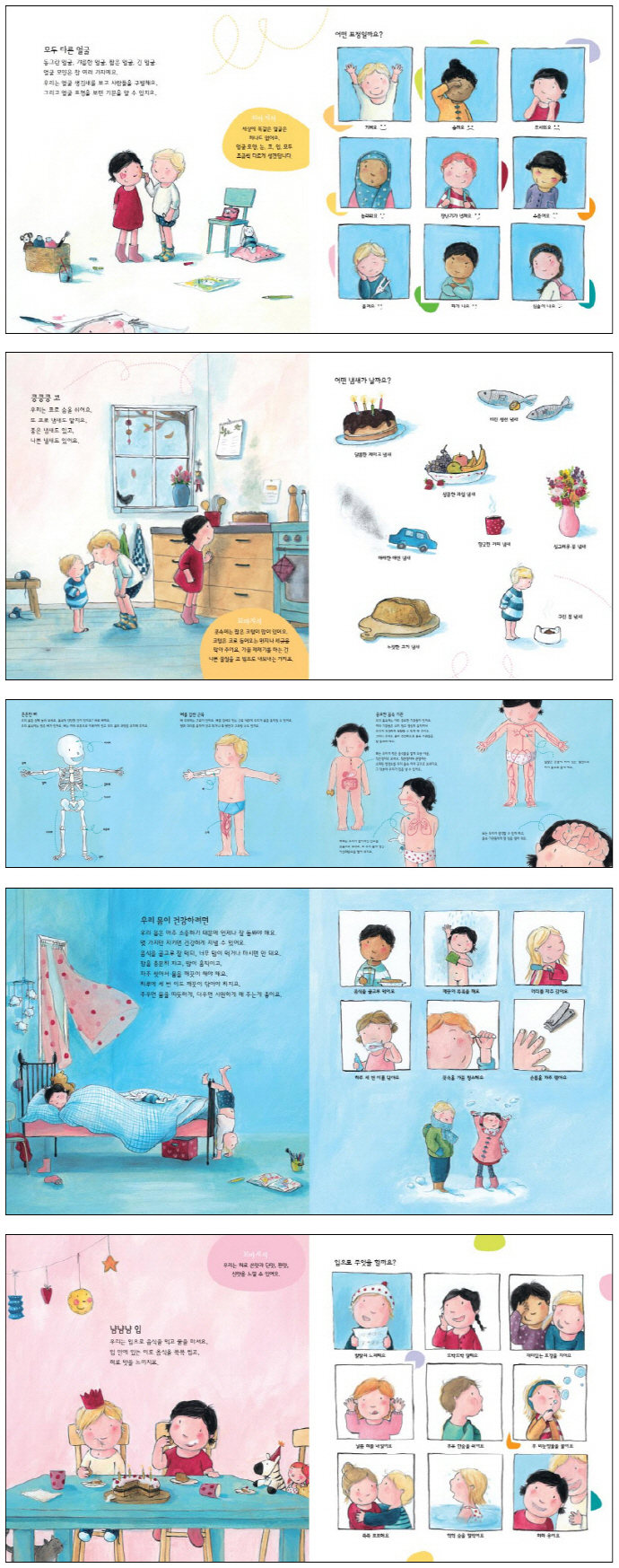 ±×¸®°í ¸Å ÆäÀÌÁö¸¶´Ù ¡®¾î¶² Ç¥Á¤Àϱî¿ä?¡¯, ¡®¾î¶² ³¿»õ°¡ ³¯±î¿ä?¡¯, ¡®¾î¶² ¼Ò¸®Àϱî¿ä?¡¯ µîÀÇ Áú¹®À» ´øÁ® ¾î¸°ÀÌµé ½º½º·Î ¸ö °¢ ºÎºÐÀÇ ¿ªÇÒÀ» »ý°¢ÇØ º¸°Ô Çß´Ù. ³¡À¸·Î ¿ì¸®°¡ °Ç°ÇÏ·Á¸é ¾î¶»°Ô ÇØ¾ß ÇÏ´ÂÁö¿¡ ´ëÇØ °£´ÜÇÑ Á¤º¸¸¦ ÁÖ¾î ¾î¸°ÀÌ µ¶ÀÚµéÀÌ Ã¥À» ÀÐÀº µÚ ÀÚ½ÅÀÇ ¸ö ÇÑ ºÎºÐ ÇÑ ºÎºÐÀÌ ¼ÒÁßÇϰí, °³°³ÀÎÀÌ ¼¼»ó¿¡ Çϳª»ÓÀÎ ¼ÒÁßÇÑ °³Ã¼¶ó´Â °É ±ú´Ý°Ô µÉ °ÍÀÌ´Ù.