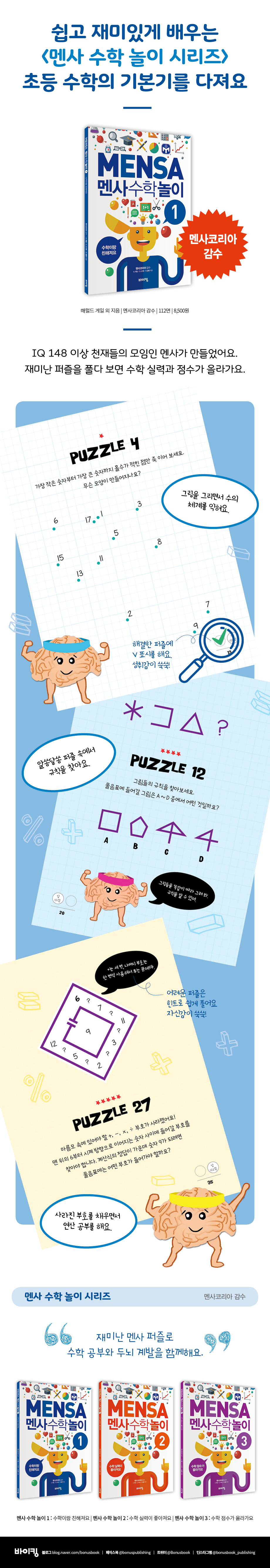 ¸à»ç´Â Áö´ÉÁö¼ö »óÀ§ 2% õÀçµéÀÇ ¸ðÀÓÀÔ´Ï´Ù. ¸Ó¸® ¾²±â¸¦ ÁÁ¾ÆÇÏ´Â ¸¸Å ¿µ±¹¸à»çÀÇ ÇÙ½É ¸â¹öµéÀº ¡¶¸à»ç Ã߸® ÆÛÁñ¡·À» ºñ·ÔÇÑ ¿©·¯ ¸à»ç ÆÛÁñÀÇ ½ºÅ׵𼿷¯¸¦ Æì³» ¿Ô¾î¿ä. <¸à»ç ¼öÇÐ ³îÀÌ>´Â ¾ÆÀ̵éÀ» À§ÇØ ¸¸µç ÆÛÁñÀ̶ø´Ï´Ù. ³À̵µ¿¡ µû¶ó ¡ì¸à»ç ¼öÇÐ ³îÀÌ 1 : ¼öÇÐÀ̶û Ä£ÇØÁ®¿ä¡í ¡ì¸à»ç ¼öÇÐ ³îÀÌ 2 : ¼öÇÐ ½Ç·ÂÀÌ ÁÁ¾ÆÁ®¿ä¡í ¡ì¸à»ç ¼öÇÐ ³îÀÌ 3 : ¼öÇÐ Á¡¼ö°¡ ¿Ã¶ó°¡¿ä¡í ÀÌ·¸°Ô 3±ÇÀ¸·Î ±¸¼ºÇß½À´Ï´Ù. ÆÛÁñ Ã¥¸¶´Ù ¾ÆÀ̵éÀÇ È£±â½ÉÀ» ÀÚ±ØÇÏ´Â ÆÛÁñÀÌ °¡µæÇØ¿ä. ¸ö¿¡ ¼ýÀÚ°¡ °¡µæ »õ°ÜÁø °ø·æÀÌ ³ª¿À°í, ´Ü ÇϳªÀÇ ¼ýÀÚ°¡ ÀÖ¾î¾ß ¹ß»çÇÒ ¼ö ÀÖ´Â ¿ìÁÖ¼±ÀÌ µîÀåÇÕ´Ï´Ù. ½Å³ª°Ô ÆÛÁñÀ» Ç®´Ù º¸¸é ¾ÆÀ̵éÀÇ µÎ³ú´Â Ȱ¹ßÇØÁý´Ï´Ù. ¸à»ç°¡ ¸¸µç ÆÛÁñÀ̶ó°í ÇØ¼ õÀçµé¸¸ Ç® ¼ö Àְųª ¼öÇÐÀ» ÀßÇÏ´Â ¾ÆÀ̸¸ Ç® ¼ö ÀÖ´Â ¹®Á¦µéÀÌ ¾Æ´Õ´Ï´Ù. ÆÛÁñÀ» Áñ±â´Â ¸¶À½À¸·Î Ǭ´Ù¸é Ç®Áö ¸øÇÒ ÆÛÁñÀº ¾ø´ä´Ï´Ù.