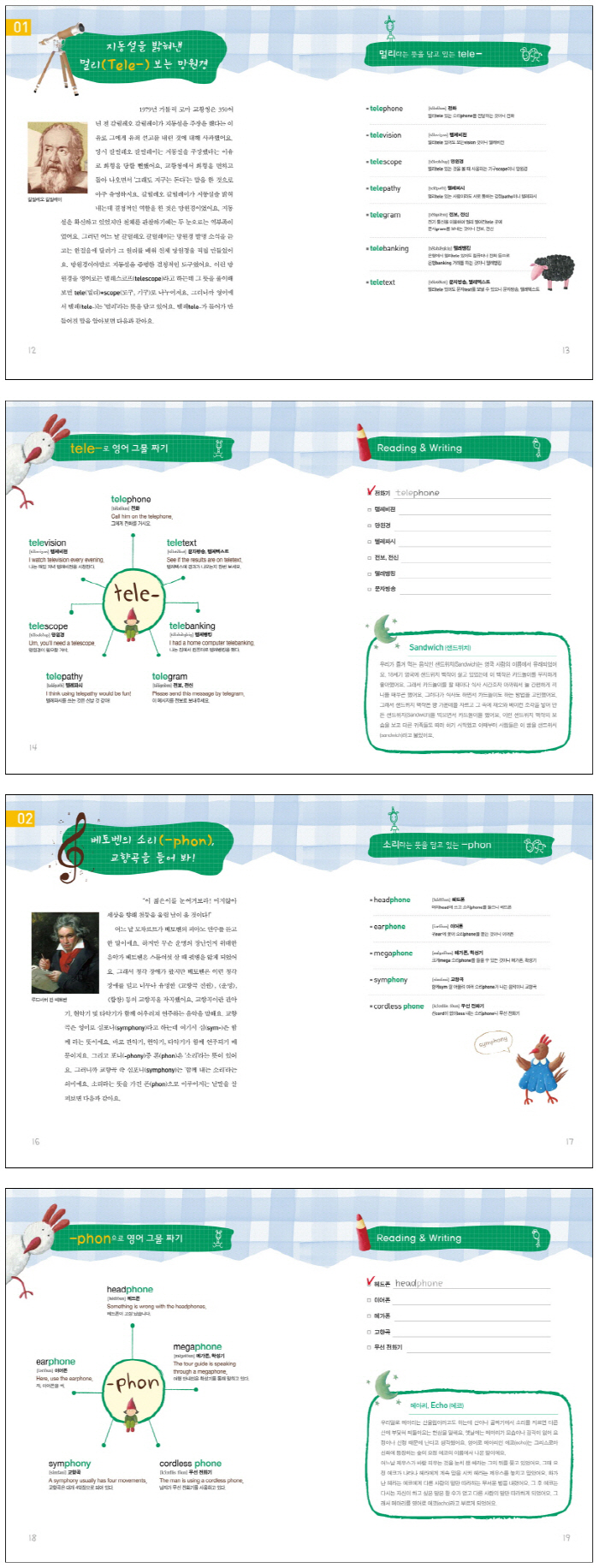 ÀÌ Ã¥Àº ¿µ¾î¿¡ ´ëÇÑ Èï¹Ì¿Í Àç¹Ì¸¦ ÁÖ´Â °Í»Ó¸¸ ¾Æ´Ï¶ó ÀÚ¿¬½º·´°Ô ±× ½Ç·Âµµ ³ôÀÏ ¼ö ÀÖ½À´Ï´Ù. Àç¹Ì·Î Àд٠º¸¸é ÀúÀý·Î ¿µ´Ü¾î°¡ ¸¸µé¾îÁö´Â ¿ø¸®¸¦ ±úÄ¡°Ô µÇ´Â °ÍÀÌÁö¿ä. ¿µ´Ü¾î ¿ø¸®´Â ´ëºÎºÐ ¿µ¾îÀÇ »Ñ¸®°¡ µÇ´Â ¾î±Ù¿¡¼ºÎÅÍ ½ÃÀÛÇÕ´Ï´Ù. ±×·¡¼ ¿µ¾î¿¡¼ ¾î±ÙÀ» Áß½ÉÀ¸·Î °øºÎÇÏ´Â °ÍÀÌ ÇÑ ´Ü¾î¸¦ ¾Ë¸é ¿ ´Ü¾î¸¦ ±úÄ¥ ¼ö ÀÖ´Â Áö¸§±æÀÔ´Ï´Ù. ¿¹¸¦ µé¸é tele-¸¦ ¾Ë¸é television, telephone µîÀÇ ¿ø¸®¸¦ ½±°Ô ¾Ë ¼ö ÀÖ´Â °Í°ú °°Àº ÀÌÄ¡ÀÔ´Ï´Ù. ¿ø¸®¸¦ ¾Ë¸é ¼ö¸¹Àº ´Ü¾î¿¡ ´ã±ä Àǹ̸¦ À¯ÃßÇØ ³¾ ¼ö ÀÖ´Â ÈûÀÌ »ý°Ü¼ Çϳª¸¦ ¾Ë¸é ¿À» ±úÄ¥ ¼ö ÀÖ´Â °ÍÀÔ´Ï´Ù.