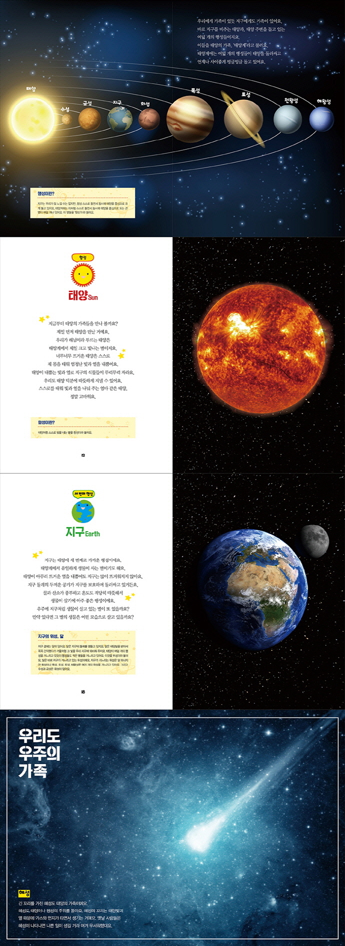 ¿ìÁÖ¿¡ ´ëÇÑ °úÇÐÀûÀÎ Áö½ÄÀ» ¿ì¸® ¾ÆÀ̰¡ ³» »ý°¢°ú ³» ´À³¦À¸·Î ¸¸³¯ ¼ö ÀÖµµ·Ï ¾²¿©Á³½À´Ï´Ù. µüµüÇÑ Á¤º¸¸¦ Àü´ÞÇÏ´Â °ÍÀÌ ¾Æ´Ï¶ó ´Ù¾çÇÑ º°µéÀÌ ¿ì¸®¿¡°Ô ¹«¾ùÀ» ¸»ÇÏ´ÂÁö Ç®¾î³»°í Àֱ⠶§¹®ÀÔ´Ï´Ù. º°µéÀÌ ¾î¿ì·¯Á® ºú¾î³»´Â ¿ìÁÖÀÇ ¾Æ¸§´Ù¿ò°ú, ±× ¾Æ¸§´Ù¿òÀÌ ¹«¾ù¿¡¼ ±âÀÎÇÑ °ÍÀÎÁö ÀÚ¿¬½º·¹ ±ú´Ý°Ô ÇØ ÁÖ´Â ¿ì¸® ¾ÆÀÌ Ã¹ ¿ìÁÖ ÀÔ¹®¼ÀÔ´Ï´Ù. |