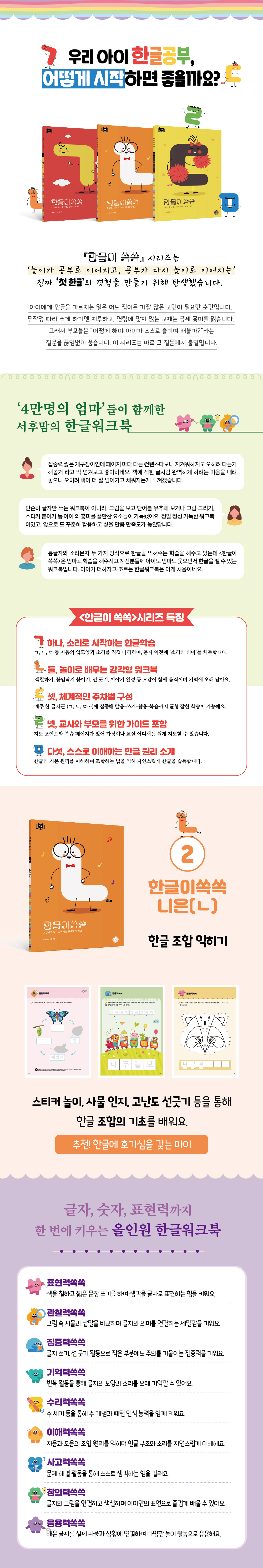 ¡ºÇѱÛÀÌ ½ï½ï¡» ½Ã¸®Áî´Â 2³â°£ 4¸¸ ¸í ¾ö¸¶µéÀÇ ¼±ÅÃÀ» ¹ÞÀº ¡®¼Èĸ¾¡¯ÀÇ ´©Àû ³ëÇϿ츦 Áý´ë¼ºÇÑ ¸ÂÃãÇü ÇÑ±Û ¿öÅ©ºÏÀÌ´Ù. ¼Ò¸® Áß½ÉÀÇ ÇÑ±Û ¿ø¸®¸¦ ³îÀÌó·³ ÀÍÈú ¼ö ÀÖµµ·Ï ¼³°èµÇ¾î, ¾ÆÀ̰¡ ½º½º·Î Ã¥À» ÆîÄ¡°í ½Í¾î ÇÏ´Â ¡®ÀÚ±âÁÖµµ ÇнÀÀÇ Ã¹ °æÇ衯À» ¸¸µé¾îÁØ´Ù.