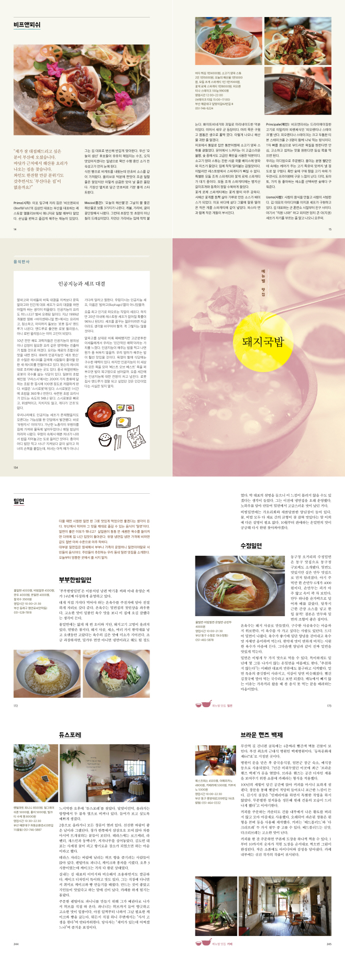 ºÎ»êÀÇ À½½Ä ¹®È¿Í ¸ÀÁýÀ» ´Ù·é ÃÖÃÊÀÇ Ã¥ ¡ººÎ»êÀ» ¸Àº¸´Ù¡», ±× µÎ ¹øÂ° À̾߱Ⱑ ½ÃÀ۵ȴÙ. Àα¸ ¾à 350¸¸ ¸í, ÇÑ ÇØ °ü±¤°´ ¾à 200¸¸ ¸í. ºÎ»êÀº ¸¹Àº »ç¶÷µéÀÌ ¿À°¡¸ç Áñ±â´Â µµ½Ã·Î ƯÈ÷ ¹Ù´Ù, »ê, ° µî ´Ù¾çÇÑ ÀÚ¿¬ ȯ°æ¿¡¼ ºñ·ÔÇÑ ½Å¼±ÇÑ Àç·á, Áö¿ª¼ºÀÌ »ì¾Æ ÀÖ´Â À½½Ä ¹®È¸¦ °¡Áö°í ÀÖ´Ù. ÀÌ Ã¥Àº ¿À´Ã³¯ ºÎ»êÀÇ ¸À°ú À̾߱⸦ ´ãÀº Ã¥À¸·Î, ÇöÀç °¡Àå ÁÖ¸ñ¹Þ´Â ºÎ»êÀÇ À½½Ä°ú ¸ÀÁýÀ» ¸ð¾Ò´Ù. ³ÑÃijª´Â ¸ÀÁý Á¤º¸ÀÇ È«¼ö ¼Ó¿¡¼ ¸À Àü¹® ±âÀÚ 2ÀÎÀÌ Á÷Á¢ ¹ßǰÀ» ÆÈ°í, ¸Àº» À½½Ä Áß ÃÖ°í¸¸À» °ñ¶ó ±× À§¿¡ ½ºÅ丮¸¦ ÀÔÇû´Ù. ¶ÇÇÑ Ä®·³ ¡®À½½Ä¸¸»ç¡¯¸¦ »ðÀÔÇØ ¸ÀÁýÀ» ¼Ò°³ÇÏ´Â µ¥ ±×Ä¡Áö ¾Ê°í, ¿À´Ã³¯ÀÇ À½½Ä¹®È¿¡ ´ëÇÑ ÀúÀÚÀÇ »ý°¢À» ´ã¾Æ³Â´Ù. ºÎ»êÀÇ ¸À°ú À̾߱⸦ ÀüÇÏ´Â ¡ººÎ»êÀ» ¸Àº¸´Ù µÎ ¹øÂ° À̾߱⡻. ¸ð¹ÙÀÏÀ» ÅëÇØ ½Ç½Ã°£À¸·Î ¸ÀÁý Á¤º¸¸¦ °øÀ¯ÇÏ´Â ½Ã´ë, ÀÌ Ã¥Àº ÁøÁ¤ÇÑ ¸ÀÀÇ °¡Ä¡¸¦ ÀüÇÏ´Â ¸ÀÁý Å¥·¹ÀÌÅÍ(Curator)°¡ µÉ °ÍÀÌ´Ù.