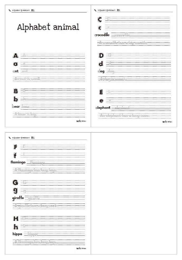 ¾ËÆÄºª µû¶ó¾²±â, ÆÄ´Ð½º µû¶ó¾²±â, ¸ð¾ç°ú »ö±ò¿¡ ÇØ´çÇÏ´Â ´Ü¾î µû¶ó¾²±â, ¼ýÀÚ¿Í ¸í»çÀÇ º¹¼ö ÇüÅ ´Ü¾î µû¶ó¾²±â, »çÀÌÆ® ¿öµå¿Í ¹®Àå µû¶ó ¾²±âÀÇ ÃÑ 5°³ÀÇ Ã©ÅÍ·Î ±¸¼ºÇÏ¿´´Ù. °¢ éÅÍ ¸¶Áö¸·¿¡ ³ª¿À´Â 'Fun Acitivity'ÆÄÆ®´Â ¾ÆÀÌÀÇ °¨°¢À» Ãѵ¿¿øÇؼ ÀÔüÀûÀÎ ÇнÀÀ» À¯µµÇϰí, ¾ÆÀÌÀÇ Á¤¼ ¹× °¨¼º ±³À°¿¡ À¯ÀÍÇÑ ¾Æ¸§´Ù¿î »çÁø, ÁýÁ߷°ú °üÂû·ÂÀ» ³ô¿©ÁÖ´Â IQ, EQ °ÔÀÓ È°µ¿µéµµ dzºÎÇÏ°Ô ¼ö·ÏÇÏ¿´´Ù.