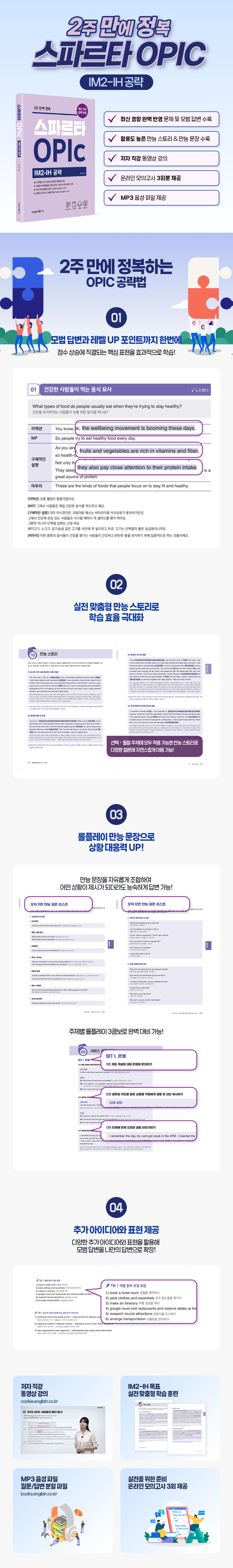 Ã¥¼Ò°³¡º½ºÆÄ¸£Å¸ OPIc ¿ÀÇÈ IM2-IH °ø·«¡»Àº IM2-IH ·¹º§À» ¸ñÇ¥·Î ÇÏ´Â ÃÊÁß±Þ ÇнÀÀÚ¸¦ À§ÇÑ Àü·«¼ÀÔ´Ï´Ù. ½ÃÇèÀÇ Àü¹ÝÀûÀÎ ±¸¼º, äÁ¡ ±âÁØ, ¼º£ÀÌ Ç׸ñ°ú ³À̵µ ¼³Á¤¿¡ ´ëÇÑ ºÐ¼®À» Á¦°øÇÏ¿© ´Ü±â°£¿¡ È¿À²ÀûÀÎ ÇнÀÀÌ °¡´ÉÇϵµ·Ï ±¸¼ºÇÏ¿´½À´Ï´Ù.