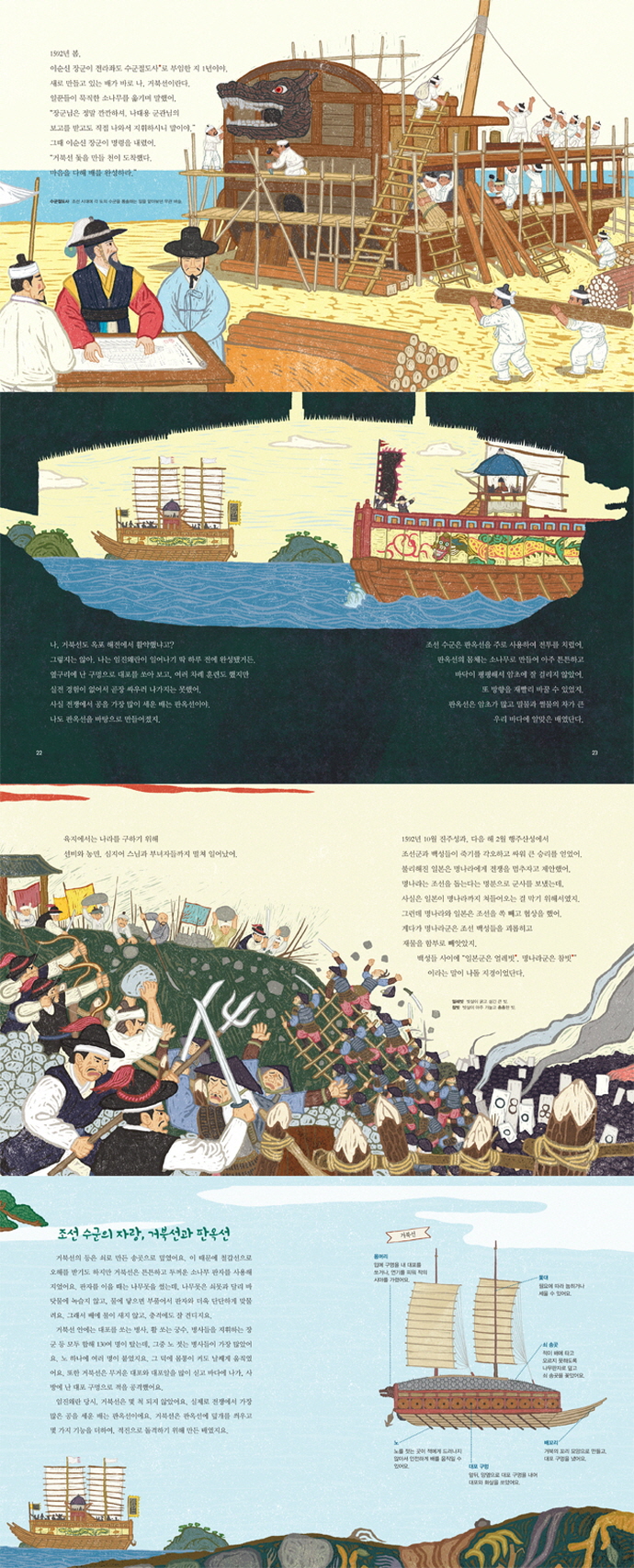 ¡ºÈñ¸ÁÀ» ½î¾Æ ¿Ã¸° °ÅºÏ¼±¡»Àº ÀÓÁø¿Ö¶õ ¶§ Ȱ¾àÇÑ °ÅºÏ¼±À» ÅëÇØ óÀýÇß´ø ÀüÀïÀÇ ¿ª»ç¸¦ µÇ¤¾î º¸°í, ³ª¶ó¸¦ Áö۱â À§ÇØ ¿ë°¨ÇÏ°Ô ½Î¿î À̼ø½Å À屺°ú ÀǺ´µéÀÇ È°¾àÀ» Á¶¸íÇÕ´Ï´Ù. ¾Æ¿ï·¯ °ÅºÏ¼±, ÆÇ¿Á¼± µî Á¶¼±ÀÇ ¼öÁØ ³ôÀº ÀüÇÔ°ú ÈÆ÷ Á¦ÀÛ ±â¼ú¿¡ ´ëÇØ »ìÆìº¾´Ï´Ù. 1592³â 4¿ù, ÀϺ»ÀÌ ¼ö¸¸ ´ë±ºÀ» À̲ø°í Á¶¼±À» ħ·«Çß½À´Ï´Ù. ÀϺ»±ºÀÇ ¹è°¡ ºÎ»ê ¾Õ¹Ù´Ù¸¦ »õ±î¸Ä°Ô µÚµ¤¾úÁö¸¸, Á¶¼±Àº ¾Æ¹«·± Áغñ°¡ µÇ¾î ÀÖÁö ¾Ê¾Æ ¼Ó¼ö¹«Ã¥À¸·Î ´çÇÒ ¼ö¹Û¿¡ ¾ø¾ú½À´Ï´Ù. ºÎ»ê ÁöÇÏö 4È£¼± ¼ö¾È¿ªÀÇ À¯¹°Àü½Ã°üÀº ÀÌ·± ÀÓÁø¿Ö¶õ ´ç½ÃÀÇ ÂüȤÇß´ø ¸ð½ÀÀ» »ý»ýÇÏ°Ô º¸¿© ÁÝ´Ï´Ù. 2005³â¿¡ ÁöÇÏö °Ç¼³ °ø»ç¸¦ ÇÏ´Ù°¡ ¹ß°ßµÈ µ¿·¡ À¾¼ºÀÇ ÇØÀÚ¿Í ¹«±â, »ýȰ¿ëǰ, »ç¶÷ÀÇ »À µîÀÌ Àü½ÃµÇ¾î ÀÖÁö¿ä. ÀÌ Ã¥À» ¾´ ¾È¹Ì¶õ ÀÛ°¡´Â Àü½Ã°üÀ» µÑ·¯º¸¸ç ÀÓÁø¿Ö¶õÀÇ ½ÃÀÛÀ» ¾Ë¸° µ¿·¡ ÀüÅõ¸¦ »ó»óÇß½À´Ï´Ù. ±×¸®°í ÀÌ ÂüȤÇÑ ÀüÀï¿¡¼ ¿ì¸®³ª¶ó¸¦ ÁöÄÑ ³½ ¿©·¯ ¿µ¿õµéÀ» ±â¾ïÇϱâ À§ÇØ ÀÌ Ã¥À» ½è½À´Ï´Ù.