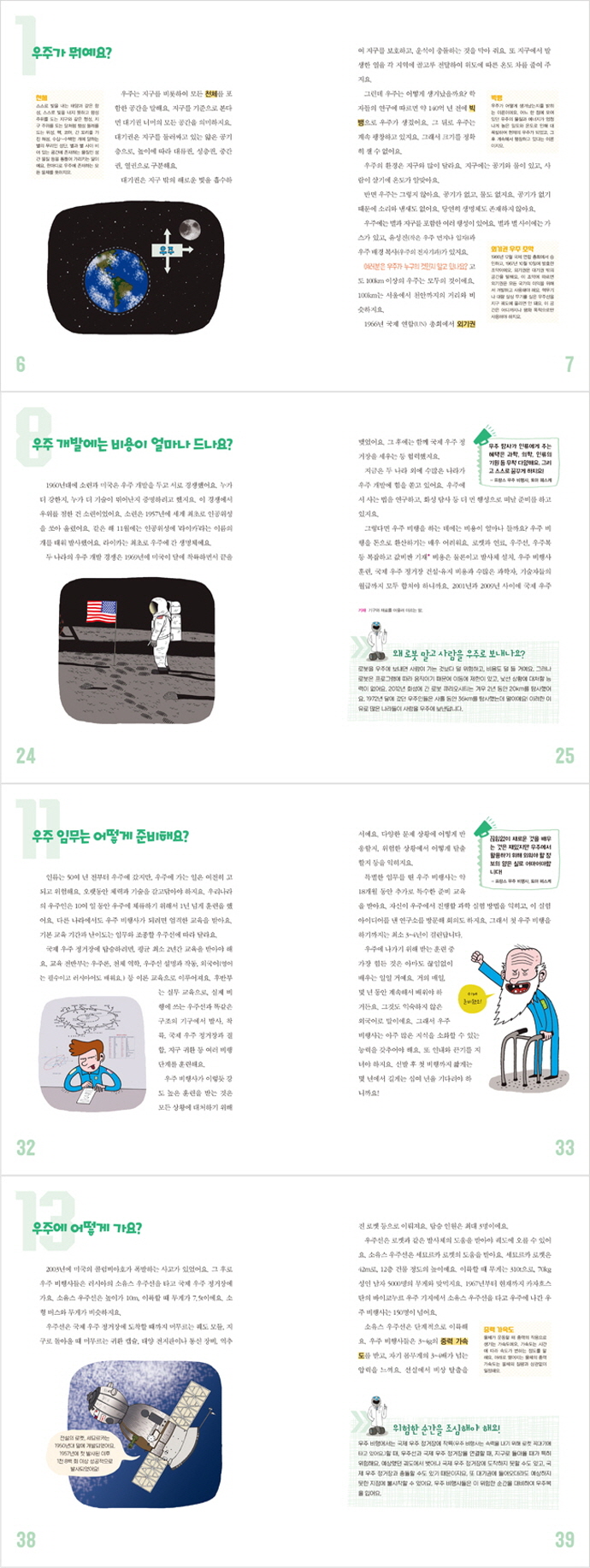 ¡ì¿ìÁÖ °³¹ßÀÌ ¹¹¿¹¿ä?¡í´Â ¿ìÁÖ°¡ ¾î¶»°Ô ¸¸µé¾îÁ³À¸¸ç, Áö±¸ÀÇ È¯°æ°ú ¾î¶»°Ô ´Ù¸¥Áö, ¾ðÁ¦ºÎÅÍ ¿ìÁÖ °³¹ßÀ» ½ÃÀÛÇÏ¿´°í, ¾îµð±îÁö °³¹ßµÇ¾ú´ÂÁö µî ¿ìÁÖ¿Í ¿ìÁÖ °³¹ßÀÇ ¿ª»ç¸¦ ¹®´ä Çü½ÄÀ¸·Î ½Éµµ ÀÖ°Ô ´Ù·ì´Ï´Ù. ¶Ç ¿ìÁÖ¿¡ ¸Ó¹°¸ç ¿¬±¸ÇÏ´Â ¿ìÁÖ ºñÇà»ç°¡ µÇ·Á¸é ¾î¶»°Ô ÇØ¾ß ÇÏ´ÂÁö, ¿ìÁÖ ºñÇà»ç´Â ¾î¶² ÀÓ¹«¸¦ ¼öÇàÇÏ´ÂÁö¸¦ ºñ·ÔÇÏ¿©, ¸Ô´Â À½½Ä, ¾Ä´Â ¹æ¹ý, »ý¸® Çö»óÀ» ÇØ°áÇÏ´Â ¹æ¹ý, ¿©°¡ »ýȰ µî ¿ìÁÖ ºñÇà»çÀÇ ÀÏ»ó»ýȰÀ» ÀçÄ¡ ÀÖ°Ô ¼³¸íÇÕ´Ï´Ù. °Ô´Ù°¡ ½ÇÁ¦·Î ±¹Á¦ ¿ìÁÖ Á¤°ÅÀå¿¡ ¸Ó¹°¸ç »ýȰÇÑ ¿ìÁÖ ºñÇà»çµéÀÇ ÂªÀº ¼Òȸ ±ÛÀ» ½Ç¾î ¿ìÁÖ »ýȰÀ» ´õ¿í »ý»ýÇÏ°Ô Àü´ÞÇÕ´Ï´Ù.