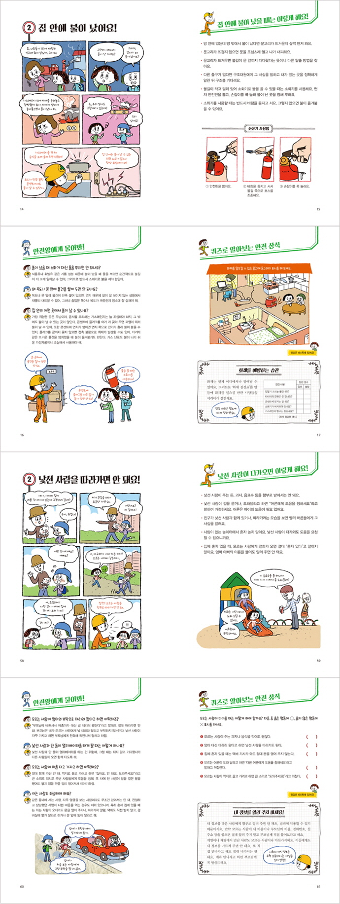 ¾ÈÀü»ç°í¸¦ ¿¹¹æÇϱâ À§Çؼ´Â Æò¼Ò¿¡ ¾ÈÀü ¼öÄ¢À» ÀÍÈ÷°í ½À°üÈÇØ¾ß ÇÕ´Ï´Ù. ÀÌ Ã¥Àº ½ÇÁ¦ »ç°í°¡ ¹ß»ýÇßÀ» ¶§ ¾ÆÀ̵éÀÌ ´çȲÇÏÁö ¾Ê°í ¾ÈÀü ¼öÄ¢À» ½ÇÇàÇÒ ¼ö ÀÖµµ·Ï ´Ù¾çÇÑ ¹æ½ÄÀ¸·Î ¹Ýº¹ÇÏ¿© ¼³¸íÇÕ´Ï´Ù. ¾ÆÀ̵éÀÌ Á» ´õ ±íÀÌ ¾Ë¾Æ¾ß ÇÒ ¾ÈÀü ¼öÄ¢Àº Q&A Çü½ÄÀ¸·Î ÀÚ¼¼ÇÏ°Ô ¼³¸íÇÏ¿© ÀÌÇØ¸¦ µ½Áö¿ä. ¶Ç ¡Û, ¡¿ ÄûÁ ÅëÇØ ¹è¿î ³»¿ëÀ» ´Ù½Ã Çѹø Á¡°ËÇϵµ·Ï ±¸¼ºÇÏ¿© ±³À° È¿°ú¸¦ ³ô¿´½À´Ï´Ù.