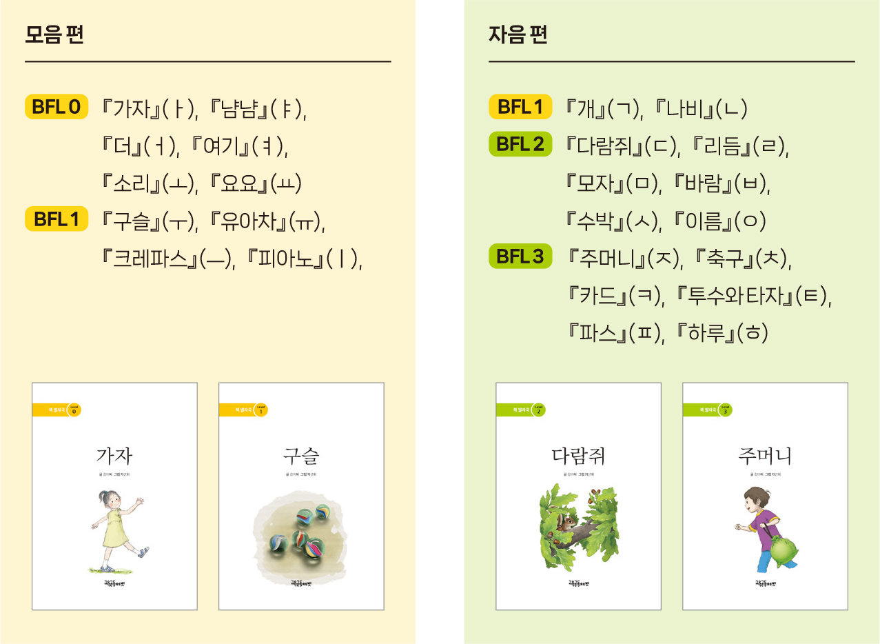 ¾ÆÀ̵éÀÌ ´õ ½±°Ô ÀÍÈ÷´Â ¸ðÀ½ ÆíÀ» ¸ÕÀú BFL 0ºÎÅÍ BFL 1±îÁöÀÇ Ã¥À¸·Î ¸¸µé¾ú°í, ¿©±â¿¡ À̾î ÀÚÀ½ ÆíÀº BFL 1ºÎÅÍ BFL 3±îÁöÀÇ Ã¥À¸·Î ¸¸µé¾ú½À´Ï´Ù. ¾ÆÀ̵鿡°Ô ´Ü°èº°·Î ÀÐÀ» Ã¥À» °í·ç, ´Ù¾çÇÏ°Ô Á¦½ÃÇÒ ¼ö ÀÖµµ·Ï BFL 0ºÎÅÍ BFL 3±îÁö °¢ 6±Ç¾¿ÀÇ Ã¥À¸·Î ±¸¼ºÇßÀ¸¸ç, ±×¸²Ã¥ 24±ÇÀÇ ¼¼ºÎ ¸ñ·ÏÀº ´ÙÀ½°ú °°½À´Ï´Ù.