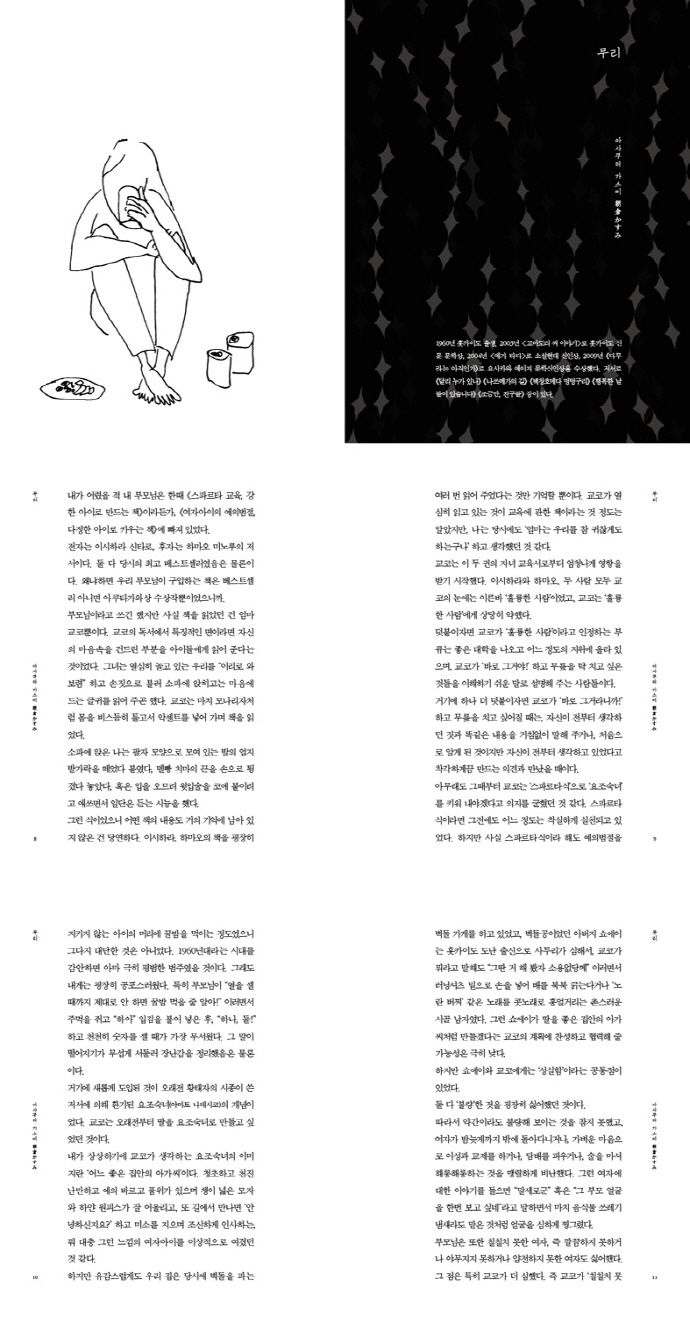 ¼úÀ» µÑ·¯½Ñ °¢¾ç°¢»ö ±¤°æÀ» ¿©¼ºÀÇ ¼¶¼¼ÇÑ ½Ã¼±À¸·Î ±×¸° 11ÆíÀÇ ¿¡¼¼ÀÌ¡ºÃëÁ߸¸´ã¡». ¡®web Ä¡Äí¸¶¡¯ÀÇ ¿¬Àç ÄÚ³Ê ¡®¸¸ÃëÂüȸ¡¯¿¡ ¿¬ÀçµÈ ±Û 10Æí°ú Ã¥ ¸¶Áö¸·¿¡ ¼ö·ÏµÈ °¡ÄíŸ ¹Ì¾²¿äÀÇ ÀÛǰÀ» Ãß°¡Çؼ ¿«Àº Ã¥ÀÌ´Ù. ÀϺ» ¹®Çа迡¼ ÃÖ°í ±ÇÀ§ÀÎ ³ª¿ÀŰ»óÀ» ¼ö»óÇÑ ¹Ì¿ì¶ó ½Ã¿Â°ú °¡ÄíŸ ¹Ì¾²¿ä´Â ¹°·Ð, Â÷¼¼´ë ÀϺ» ¹®Çа踦 À̲ø¾î°¥ ´Ï½Ã °¡³ªÄÚ¿Í ¾ß¸¶ÀÚŰ ³ª¿ÀÄÚ¶ó µî ¼Ò¼³°¡, ¹è¿ì, ¸¸È°¡, Ǫµå Àú³Î¸®½ºÆ® µî ´Ù¾çÇÑ Á÷±º¿¡¼ Ȱ¾àÇÏ´Â ÀúÀÚµéÀÇ °¨¼ºÀ» ¿³º¼ ¼ö ÀÖ´Ù.