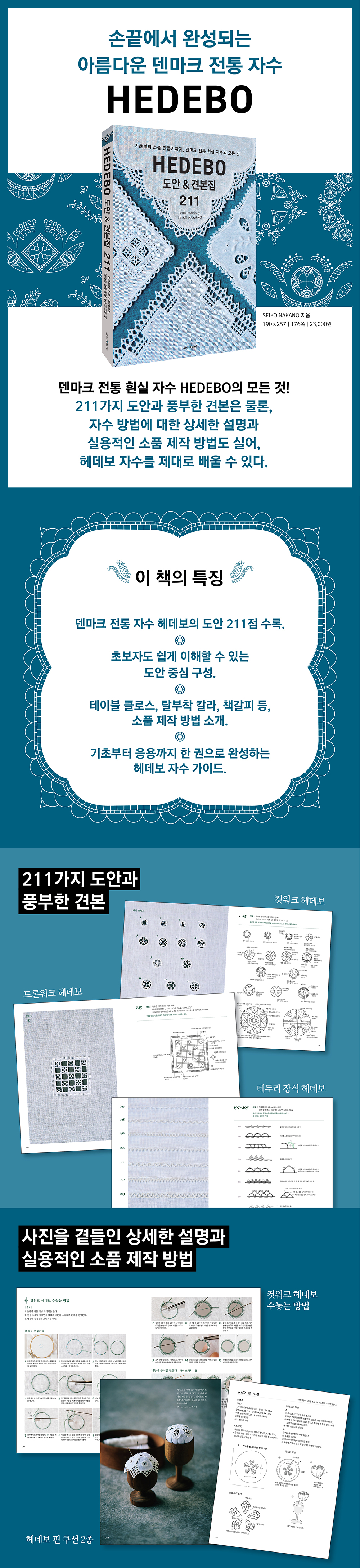 ¿©±â¿¡ Çìµ¥º¸ ÀÚ¼ö¸¦ Ȱ¿ëÇÑ ´Ù¾çÇÑ ¼Òǰ Á¦ÀÛ ¹æ¹ý±îÁö ´õÇØ, ±âÃʺÎÅÍ ÀÀ¿ë±îÁö HEDEBO ÀÚ¼öÀÇ ¸ðµç °ÍÀ» ÇÑ ±Ç¿¡ ´ã¾Ò½À´Ï´Ù.