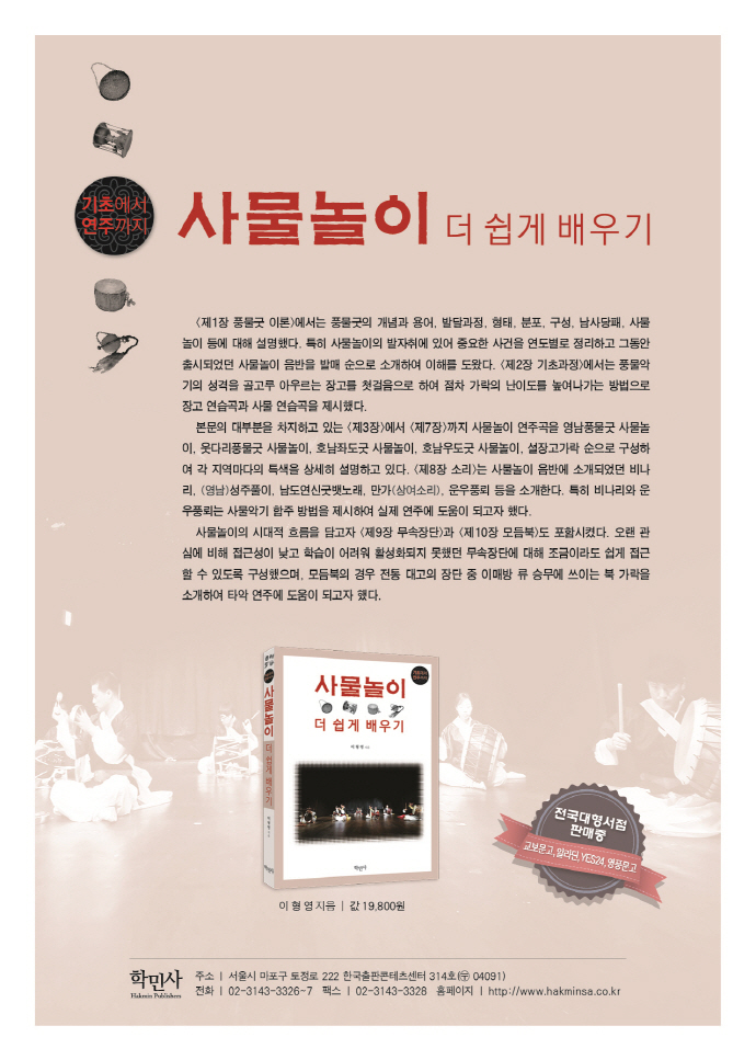 »ç¹°³îÀ̸¦ óÀ½ Á¢ÇÏ°Ô µÈ ´ëÇнÃÀý ºÎÅÍ ÁÙ°ð »ç¹°³îÀÌ¿¡ ºüÁ® °ø¿¬ÀåÀ» ã¾Æ´Ù´Ï°í À½¹ÝÀ» ±¸ÀÔÇØ ¼ö¾øÀÌ µé À¸¸é¼ ³ª¸§´ë·Î °¡¶ôÀ» Á¤¸®Çغ¸±âµµ ÇÏ°í ¿¬½Àµµ ÇØº¸±âµµ ÇÏ¸é¼ ÁÂÃæ¿ìµ¹ÀÇ ½Ã°£µéÀ» º¸³Â¾ú´Ù. »ç¹°³îÀ̸¦ Àü¹®ÀûÀ¸·Î ÇÏ´Â »ç¶÷ÀÌ ¾Æ´Ï°í, ±×Àú »ç¹°¾Ç±â¸¦ ÁÁ¾ÆÇÏ´Â ÇÑ »ç¶÷À¸·Î¼ ¹è¿òÀÇ Áñ°Å¿òÀ» ´À³¢¸ç Å͵æÇß´ø ¿¬½ÀÀåÀÇ ±â·ÏÀÌ Ã¹ ¹øÂ° Ã¥ ¡º½±°Ô ¹è¿ì´Â »ç¹°³îÀÌ¡»·Î ź»ýÇß¾ú´Ù. »ç¹°³îÀÌ °¡¶ô¿¡ ´ëÇÑ Á¢±Ù¼ºÀÌ »ó´çÈ÷ Á¦ÇÑÀûÀÎ »óȲ¿¡¼ »ç¹°³îÀÌ ¾ÖÈ£°¡µé¿¡°Ô Á¶±Ý ÀÌ¶óµµ µµ¿òÀÌ µÇ°íÀÚ ÇÏ´Â ¹Ù¶÷À¸·Î Ãâ°£ÇÑ ÀÌÈÄ 13³âÀÌ Áö³µ´Ù. ù Ã¥Àº ºÎÁ·ÇÔÀÌ ¸¹¾ÒÁö¸¸ ±× ½ÃÀý ¼ø¼öÇÑ ¿Á¤ÀÇ »ê¹°·Î ¸¸µé¾îÁø °á°ú¹°¿¡ ´ëÇØ¼´Â ¿©ÀüÈ÷ ¾ÖÂø°ú »ÑµíÇÔÀÌ °øÁ¸ÇÑ´Ù. ´ç½Ã¿Í ºñ±³ÇÏ¸é ±×µ¿¾È ³ª ÀÚ½ÅÀÌ »ç¹°³îÀ̸¦ ´ëÇÏ´Â ½Ã¼±ÀÌ ÀϰüÀûÀ̾ú´ø °Í °°Áö´Â ¾Ê´Ù. ¹Ù»Û ÀÏ»ó°ú ¸Å³Ê¸®ÁòÀ» À̱âÁö ¸øÇØ ¿À·¡µµ·Ï »ç¹°¾Ç±â¿¡¼ ¼ÕÀ» ³õÀº Àûµµ ÀÖ¾ú´Ù. µ¹ÀÌÄѺ¸¸é ´õ¿í ¹ßÀüÇÒ ¼ö ÀÖ¾ú´ø °è±â¸¦ ³õ¾Æ¹ö¸° °Í °°¾Æ ¾Æ½¬¿î ¸¶À½ÀÌ Å©´Ù. ÇÏÁö¸¸ ¿À·£ ½Ã°£ÀÌ Èê·¯ ´Ù½Ã ¸¸³ »ç ¹°³îÀÌÀÇ ¸Å·ÂÀº ÀÌÀü°ú´Â ´Ù¸¥ Â÷¿øÀÇ ±àÁ¤Àû ¿¡³ÊÁö·Î ´Ù°¡¿Ô´Ù. µÎ ¹øÂ° Ã¥À» ÁغñÇÏ¸é¼ Á» ´õ ½Ç¿ëÀûÀÌ°í ¾ËÂù ³»¿ëÀ» ´ã°íÀÚ ÇÏ¿´´Ù. ù Ã¥ÀÌ °³ÀÎÀû ÃëÇ⸸À¸·Î Áö¸éÀ» ÇÒ¾ÖÇß´ø ºÎºÐÀº ¾ø¾ú´ÂÁö ³ÃÁ¤ÇÏ°Ô ¹Ý¼º Çß´Ù. ±×·¡¼ ÀÌ Ã¥Àº °¡±ÞÀû °´°üÀû ½Ã¼±À¸·Î ´ë´Ù¼ö »ç¶÷µéÀÌ ½±°Ô ¹Þ¾ÆµéÀÏ ¼ö ÀÖ°Ô ÇÏ´Â °ÍÀÌ ¿ì¼±À̶ó »ý°¢ÇÏ¿© °ú°¨È÷ ¹ö·Á¾ß ÇÒ ºÎºÐ°ú ä¿ö¾ß ÇÒ ºÎºÐÀ» °í¹ÎÇß´Ù. Á¦1ÀåÀÇ Ç³¹°±Â ÀÌ·ÐÀº ÃÖ´ëÇÑ °£°áÇÏ°Ô ³»¿ëÀ» Àü´ÞÇϰíÀÚ Çß´Ù. óÀ½ º¸´Ù ºÐ·®À» ¸¹ÀÌ ÁÙ¿´Áö¸¸ ¿ÀÈ÷·Á ´õ ¸íÈ®ÇØÁ³´Ù°í ÇÒ ¼ö ÀÖ°Ú´Ù. »ç¹°³îÀÌ ÀÇ ¹ßÀÚÃë¿¡ ÀÖ¾î Áß¿äÇÑ »ç°ÇÀ» ¿¬µµº°·Î Àϸñ¿ä¿¬ÇÏ°Ô Á¤¸®ÇÏ°í ±×µ¿¾È Ãâ½ÃµÇ¾ú´ø »ç¹°³îÀÌ À½¹ÝÀ» ¹ß¸Å ¼øÀ¸·Î ¼Ò°³ÇÏ¿© ÀÌÇØ¸¦ µµ¿Ô´Ù. Á¦2Àå¿¡¼ Á¦7Àå±îÁö º»¹®ÀÇ ´ëºÎºÐÀ» Â÷ÁöÇϰí ÀÖ´Â »ç¹°³îÀÌ ¾Çº¸ÀÇ °æ¿ì º¸ÆíÀû Ȱ¿ëµµ°¡ ³ôÀº °ÍÀ¸·Î ¼±º°ÇÏ¿´´Ù. ºÎ¿¬ ¼³¸íÀ» ÃÖ´ëÇÑ Áö¾çÇÏ°í ¾Çº¸¸¦ º¸´Â °Í¸¸À¸·Îµµ È帧ÀÌ ÀÌÇØµÇµµ·Ï ±¸¼ºÇÏ¿´´Ù. ¼¼ºÎ °¡¶ôÀÇ ¿î¿ë¿¡ À־µ ¸¹Àº º¯È¸¦ ¹ß°ßÇÒ ¼ö ÀÖÀ» °ÍÀÌ´Ù. ƯÈ÷ Âü°í °¡¶ôÀÇ °æ¿ì, º»¹®ÀÇ ÁøÇà°ú Çò°¥¸®Áö ¾Êµµ·Ï ¹Ú½º·Î ó¸®ÇÏ¿© ÀÌÇØ¸¦ µµ¿Ô´Ù. Á¦8Àå ¼Ò¸® ´Ü¿ø¿¡¼ °¡Àå ½Å°æÀ» ¸¹ÀÌ ¾´ ºÎºÐÀº »ç¼³ÀÇ Á¤È®¼ºÀÌ´Ù. ÀÌ ¸¦ À§ÇØ À½¹ÝÀ» ¼ö ¾øÀÌ µè°í ºÐ¼®Çß´Ù. ƯÈ÷ ºñ³ª¸®¿Í ¿î¿ìdz·Ú´Â »ç¹°¾Ç±â ÇÕÁÖ ¹æ¹ýÀ» Á¦½ÃÇÏ¿© ½ÇÁ¦ ¿¬ÁÖ¿¡ µµ¿òÀÌ µÇ°íÀÚ Çß´Ù. ¹«¾ùº¸´Ùµµ À̹ø Ã¥ÀÇ Å« Ư¡À̶ó¸é Á¦9Àå ¹«¼ÓÀå´Ü°ú Á¦10Àå ¸ðµëºÏ ´Ü¿øÀÌ Ãß°¡µÈ °ÍÀ» µé ¼ö Àִµ¥, ÀÌ´Â »ç¹°³îÀÌÀÇ ½Ã´ëÀû È帧°ú ¹«°üÇÏÁö ¾Ê´Ù. µ¿ÇØ¾È ±Â, °æ±â¹«¼Ó, Áøµµ¾Ä±è±Â µî ¹«¼ÓÀå´Ü¿¡ °üÇÑ °ü½ÉÀº ¿À·¡ÀüºÎÅÍ ÀÖ¾î¿ÔÁö¸¸ Á¢±Ù¼ºÀÌ ³·°í ÇнÀÀÌ ¾î·Á¿ö Å©°Ô Ȱ¼ºÈµÇÁö´Â ¸øÇß´Ù. ÀÌ ¿¡ ¹«¼ÓÀå´Ü¿¡ ´ëÇÑ ¸·¿¬ÇÑ Èï¹Ì°¡ ÀÖÁö¸¸, ¿¬ÁÖÇϴµ¥ ¾î·Á¿òÀ» ´À³¢´Â ÀÌ µé¿¡°Ô Á¶±ÝÀÌ¶óµµ ½±°Ô Á¢±ÙÇÒ ¼ö ÀÖµµ·Ï ±¸¼ºÇÏ¿´´Ù. ¸ðµëºÏÀº 2000³â´ë µé¾î ´ëÁßȵDZ⠽ÃÀÛÇÑ ¾ç½ÄÀÌ´Ù. ¿¬ÁÖ ¹æ½ÄÀÌ µå·³°ú ºñ½ÁÇØ¼ 2¹Ú ±¸Á¶ÀÇ °¡¶ô¿¡ ÆÛÆ÷¸Õ½º¸¦ °¡¹ÌÇÏ´Â ÇüŰ¡ ¸¹Áö¸¸ ÀüÅë ´ë°íÀÇ Àå´ÜÀ» ¿¬ÁÖ¿¡ Ȱ¿ëÇϱ⵵ ÇÑ´Ù. º»¹®¿¡¼´Â ´ë°í Áß¿¡¼ ÀÌ¸Å¹æ ·ù ½Â¹«¿¡ ¾²ÀÌ´Â ºÏ °¡¶ô(ÀÚÁø¸ð¸®, ÈÖ¸ð¸®)À» ¼Ò°³ÇÏ¿© Ÿ¾Ç ¿¬ÁÖ¿¡ µµ¿òÀÌ µÇ°íÀÚ ÇÏ¿´´Ù. ±ä ½Ã°£À» ÇÒ¾ÖÇÏ¿© Á¤¼ºÀ» µéÀÎ ¸¸Å ¾ËÂù °á°ú¹°À» ³»³õÀ» ¼ö ÀÖ°Ô µÇ¾î ±â»Ú´Ù. ¾î´À ºÎºÐµµ ¹ö¸± ¼ö ¾øÀ» ¸¸Å ¼±º°ÇÏ¿© ´ã¾Ò´Ù. ¾Æ¹«ÂÉ·Ï ÀÌ Ã¥À» Á¢ÇÏ¸ç »ç¹°³îÀ̸¦ ¹è¿ì°íÀÚ ÇÏ´Â À̵鿡°Ô ¹Ì·ÂÇϳª¸¶ µµ¿òÀÌ µÇ¾úÀ¸¸é ÇÏ´Â ¹Ù¶÷ÀÌ´Ù. ¾ÕÀ¸·Îµµ »ç¹°³îÀ̰¡ ÀλýÀÇ °¡Àå ¸ÚÁø Ä£±¸·Î¼ ´Ã ÇÔ²² ÇÏ ±â¸¦ ±â´ëÇÑ´Ù. ÀÌ Çü ¿µ ÃâÆÇ»ç ¼Æò[Á¦1Àå dz¹°±Â ÀÌ·Ð]¿¡¼´Â dz¹°±ÂÀÇ °³³ä°ú ¿ë¾î, ¹ß´Þ°úÁ¤, ÇüÅÂ, ºÐÆ÷, ±¸¼º, ³²»ç´çÆÐ, »ç¹°³îÀÌ µî¿¡ ´ëÇØ ¼³¸íÇß´Ù. ƯÈ÷ »ç¹°³îÀÌÀÇ ¹ßÀÚÃë¿¡ ÀÖ¾î Áß¿äÇÑ »ç°ÇÀ» ¿¬µµº°·Î Á¤¸®ÇÏ°í ±×µ¿¾È Ãâ½ÃµÇ¾ú´ø »ç¹°³îÀÌ À½¹ÝÀ» ¹ß¸Å ¼øÀ¸·Î ¼Ò°³ÇÏ¿© ÀÌÇØ¸¦ µµ¿Ô´Ù. [Á¦2Àå ±âÃ