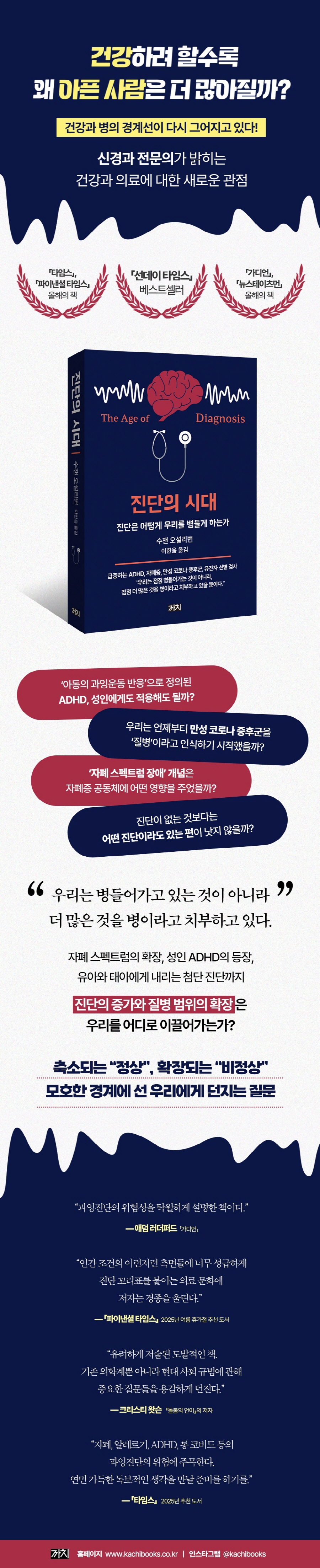 ÃâÆÇ»ç ¼ÆòADHD, ÀÚÆóÁõ, ¸¸¼º ÁõÈıºÀÌ Çö´ëÀÎÀ» ±«·ÓÈ÷°í ÀÖ´Ù. À̵é ÁúȯÀÇ ¹ßº´·üÀÌ Áõ°¡Çϰí ÀÖ´Ù´Â ±â»ç´Â ´õ ÀÌ»ó Ãæ°ÝÀûÀÌÁö ¾ÊÀ¸¸ç, ÀÌ·± ÁúȯÀº ÀÌÁ¦ ¿ì¸®ÀÇ ÀÏ»óÀûÀÎ ´ëÈÀÇ ÁÖÁ¦À̱⵵ ÇÏ´Ù. 30³â ³Ñ°Ô ȯÀÚµéÀ» Áø·áÇØ¿Â ½Å°æ°ú ÀÇ»çÀÎ ÀúÀÚ ¿ª½Ã ÀÌ¹Ì ¼³Ê °¡Áö°¡ ³Ñ´Â ¸¸¼ºÁúȯÀ» ¾Î°í ÀÖ´Ù´Â Áø´ÜÀ» ¹ÞÀº »óÅ¿¡¼ ÀÚ½ÅÀ» ã¾Æ¿À´Â ÀþÀºÀ̵éÀÌ ÃÖ±Ù µé¾î Á¡Á¡ ´Ã¾î³ª°í ÀÖ´Ù´Â »ç½ÇÀ» ÀÚ°¢ÇÏ°Ô µÈ´Ù. ÀúÀÚ´Â ¿ì¸®°¡ ÷´Ü °úÇÐÀÇ ¹ßÀü°ú °Ç°¿¡ ´ëÇÑ »çȸÀû ºÐÀ§±âÀÇ º¯È·Î ÀÎÇØ¼ ³Ê¹« ¸¹Àº Áø´Ü, Áï °úÀ×Áø´ÜÀÇ ½Ã´ë¿¡ »ì°í ÀÖ´Â °ÍÀº ¾Æ´ÑÁö Àǹ®À» Á¦±âÇϸç, ÀÇÇÐÀû Áø´ÜÀÌ Á¤È®ÇÏ°Ô ¾î¶² °ÍÀ̰í, Áø´ÜÀ» ¹ÞÀº »ç¶÷¿¡°Ô ¹«½¼ Àǹ̰¡ µÇ¾î¾ß ÇÏ´ÂÁö¸¦ ÁøÁöÇÏ°Ô °í¹ÎÇÒ °ÍÀ» Ã˱¸ÇÑ´Ù. Áø´ÜÀ» µÑ·¯½Ñ ¡°Á¤»ó¡±°ú ¡°ºñÁ¤»ó¡±ÀÇ °æ°è°¡ ³Ê¹« ¸ðÈ£ÇÑ °æ¿ì°¡ ¸¹Àº µ¥´Ù°¡, Á¡Á¡ ¡°Á¤»ó¡±ÀÇ ¹üÀ§´Â Ãà¼ÒµÇ°í ¡°ºñÁ¤»ó¡±ÀÇ ¹üÀ§´Â È®ÀåµÇ°í ÀÖ´Ù´Â ÀúÀÚÀÇ ½Ã°¢Àº ÀÇÇÐ Áø´Ü¿¡ ´ëÇØ¼ ¸¹Àº ½Ã»çÁ¡À» ¾È°ÜÁØ´Ù. ÀúÀÚ´Â ÀÇÇÐ Áø´ÜÀÌ ½ÇÁ¦·Î´Â Á¤½Å, ½ÅüÀû Áõ»óÀ» ¼¼½ÉÇÏ°Ô °æÃ»ÇÏ´Â °æÇèÀÌ Ç³ºÎÇÑ Àǻ簡 ³»¸®´Â ÀÓ»ó ±â¿¹ÀÓÀ» ºÐ¸íÈ÷ ÇÑ´Ù. Áø´ÜÀÇ ±âÁØÀÌ µÇ´Â Á¤È®ÇÑ ¼öÄ¡ ¶ÇÇÑ ÇÕÀÇ·Î °áÁ¤µÈ´Ù. ¿äÁò ¸¹Àº »ç¶÷µéÀÌ ÁÖ¸ñÇÏ´Â Ç÷´ç ¿ª½Ã ¸¶Âù°¡ÁöÀÌ´Ù. ´ç´¢º´ Àü ´Ü°è¸¦ ±¸ºÐÇÏ´Â ±âÁØÀÌ µÇ´Â Ç÷´ç ¼öÄ¡¸¦ Á¶±Ý¸¸ Á¶Á¤ÇÏ´õ¶óµµ ¾öû³ ¼öÀÇ »ç¶÷ÀÌ ÇÏ·ç¾ÆÄ§¿¡ °©Àڱ⠴索º´À» °ÆÁ¤ÇØ¾ß Çϴ óÁö¿¡ ³»¸ô¸°´Ù. ÀúÀÚ´Â ÀÌ·¸µí Áúº´ÀÇ Á¤ÀǸ¦ È®ÀåÇÔÀ¸·Î½á »ç¶÷µéÀÌ ¾Æ¹«·± ÇýÅõµ ¾øÀÌ ºÒÇÊ¿äÇÑ Ä¡·á¸¸ ¹Þ°Ô µÇ´Â °ÍÀº ¾Æ´ÑÁö ¿ì·ÁÇÑ´Ù.