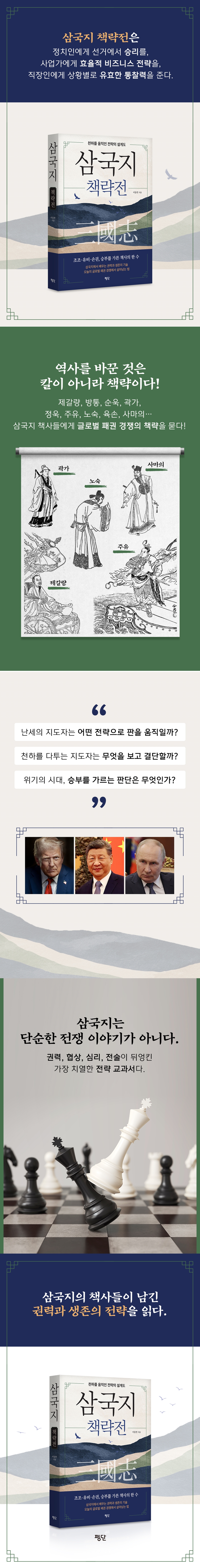ÀÌ Ã¥Àº »ï±¹Áö ¼Ó Ã¥·«°ú »ç°ÇµéÀ» ¹ÙÅÁÀ¸·Î ±Ç·ÂÀÇ ÀÛµ¿ ¹æ½Ä, Á¶Á÷ °æÀïÀÇ ¿ø¸®, Àΰ£ Áý´ÜÀÇ ½É¸®±¸Á¶¸¦ ÀÔüÀûÀ¸·Î µå·¯³½´Ù. ¶Ù¾î³ °³ÀÎÀÇ ´É·Âº¸´Ù ´õ Áß¿äÇÑ °ÍÀº ÆÇÀ» Àд Àü·«Àû »ç°íÀ̸ç, Á¶Á÷ÀÇ ¹Ì·¡´Â °á±¹ ¾î¶² Àü·«À» ¼±ÅÃÇÏ´À³Ä¿¡ µû¶ó ´Þ¶óÁø´Ù´Â »ç½ÇÀ» »ï±¹ÁöÀÇ »ç·Ê¸¦ µé¾î ¼³µæ·Â ÀÖ°Ô º¸¿©ÁØ´Ù.