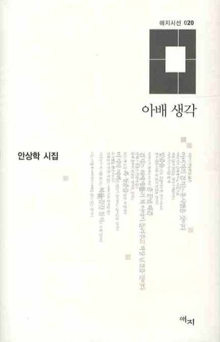¾È»óÇÐ ½ÃÁý¡º¾Æ¹è »ý°¢¡». ¾Èµ¿ÀÇ ½ÃÀÎ ¾È»óÇÐÀÇ ³× ¹øÂ° ½ÃÁýÀ¸·Î, ½±°í ÆòÀÌÇϸ鼵µ ±íÀº ¿ï¸²À» ÁÖ´Â ÀÛǰµéÀ» ´ã¾Ò´Ù. Ç¥Á¦ÀÛ ¡´¾Æ¹è »ý°¢¡µÀ» ºñ·ÔÇÏ¿© ¡´¾Æ¹öÁöÀÇ °ËÁö¡µ, ¡´¾Æ¹öÁöÀÇ °¨³ª¹« À̾߱⡵ µîÀ» ÅëÇØ '¾Æ¹è'¿¡ ´ëÇÑ °¡½¿ ¹¶Å¬ÇÑ ±×¸®¿òÀ» Ç¥ÇöÇÑ´Ù. ÃÑ 54ÆíÀÇ ½Ã°¡ ´ã°Ü ÀÖ´Ù.