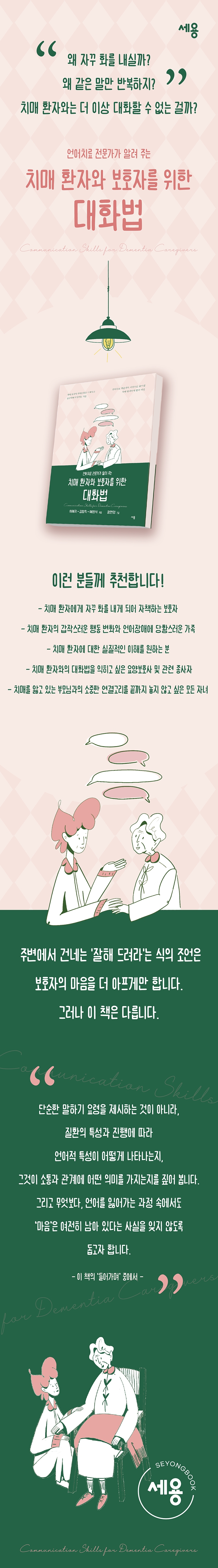 »ç¶ûÇÏ´Â °¡Á·ÀÌ Ä¡¸Å ÆÇÁ¤À» ¹ÞÀº ÈÄ, ¸¹Àº º¸È£ÀÚµéÀÌ °¡Àå ¸ÕÀú ºÎµúÈ÷´Â º®Àº '´ëÈ'ÀÔ´Ï´Ù. Çß´ø ¸»À» ¹Ýº¹Çϰí, ´Ü¾î¸¦ Àؾî¹ö¸®°í, ÀÚÁÖ È¸¦ ³»´Â Ä¡¸Å ȯÀÚ ¾Õ¿¡¼ ¹ÝÀÀÇϱ⠸·¸·ÇØÇÏ´Â ºÐµéÀ» À§ÇÑ Ã¥ÀԴϵð. ¾ð¾îÄ¡·á Àü¹®°¡ÀÇ ½Ã¼±À¸·Î Ä¡¸Å ȯÀÚ¿ÍÀÇ ¾ð¾î¼ÒÅë ¹æ¹ýÀ» ½ÇÁúÀûÀ¸·Î ´Ù·ì´Ï´Ù. Ä¡¸ÅÀÇ ´Ü°èº° ¾ð¾î¼ÒÅë º¯È»Ó¸¸ ¾Æ´Ï¶ó ¿øÀÎ Áúȯº° ¾ð¾îÀû Ư¼º ¶ÇÇÑ ¾Ë±â ½±°Ô ¼³¸íÇϰí ÀÖ½À´Ï´Ù.