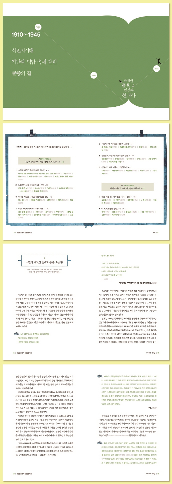 Ã¥¼Ò°³¡º±îÄ¥ÇÑ ¹®ÇÐ ¼Ó Ä£ÀýÇÑ Çö´ë»ç¡»´Â °íµîÇб³ ±¹¾î¿Í ¼ö´É¹®ÇÐ ½ÃÇè¿¡ ÀÚÁÖ ÃâÁ¦µÇ´Â Çʵ¶ ¹®ÇÐÀÛǰÀ» ¼ö·ÏÇß´Ù. ±×¸®°í ÀÌ Ã¥¿¡¼ ¼³¸íÇÏ´Â Çѱ¹Çö´ë»ç´Â ¸¹Àº ÇлýµéÀÌ ¿Ü¿ö¾ßÇÒ °ÍÀÌ ¸¹¾Æ ±«·Ó±â¸¸ ÇÑ 100³âÀÇ Çѱ¹»ç À̾߱â´Ù. ÀÌ Ã¥Àº ½Ä¹ÎÁö½Ã´ë ÀÌ»óÈ, 丸½Ä, ÇöÁø°ÇºÎÅÍ 6 25 ÀÌÈÄ ´ëÇѹα¹ÀÇ Âü´ãÇÔÀ» ±×¸° ±ÇÁ¤»ý, ¹Ú¿Ï¼, ÃÖÀÎÈÆ, ±×¸®°í ¼Ò½Ã¹ÎµéÀÇ À̾߱⸦ ±×¸° Á¶¼¼Èñ, Ȳ¼®¿µ, À§±âö±îÁö ÀÛǰ ¼Ó »ç°Ç°ú Àι°À» ÅëÇØ Çö´ë»ç¸¦ ÀÌÇØÇÒ ¼ö ÀÖµµ·Ï ÇÏ¿´´Ù. ÀÌ·± ¹è°æÁö½ÄÀº ÀÛǰÀ» ½º½º·Î µ¶ÇØÇÏ´Â ÈûÀ» ±æ·¯ÁÖ´Â °ÍÀº ¹°·Ð, ±¹¾î¿Í Çѱ¹»ç¸¦ °¡Àå È¿À²ÀûÀ¸·Î °øºÎÇÒ ¼ö ÀÖ´Â ¹æ¹ýÀ» ¾Ë·ÁÁÖ°í ÀÖ´Ù.