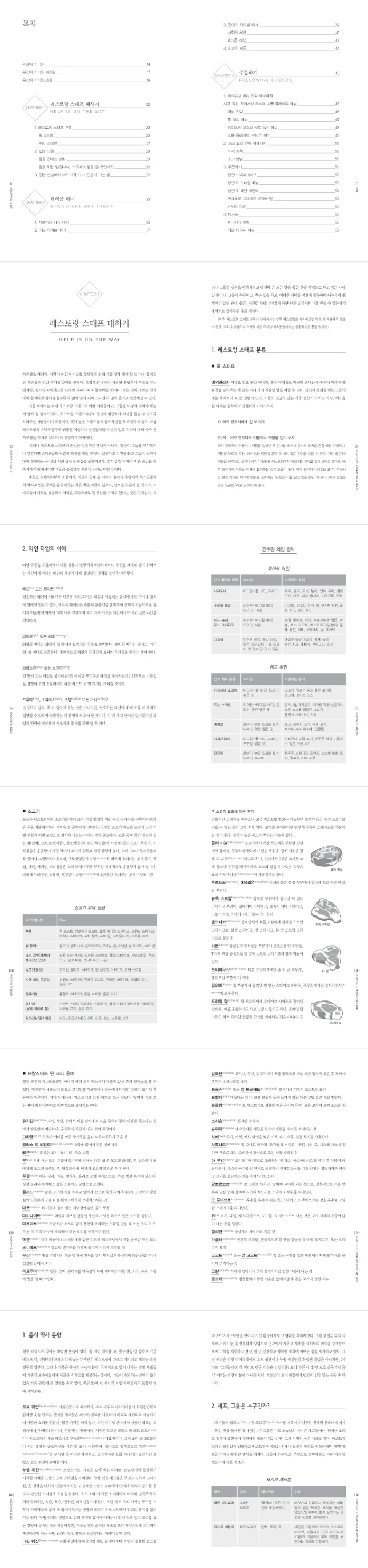 °¡Àå ±âº»ÀûÀÎ ÁÖ¹®ÇÏ´Â ¹æ¹ýºÎÅÍ ½Ä±â »ç¿ë¹ý µîÀÇ ½Ä»ç ¸Å³Ê, ·¹½ºÅä¶û ½ºÅÂÇÁ¸¦ ´ëÇÏ´Â ¹æ¹ý, ÆÁÀ» ÁÖ´Â ¹ý µîÀº ÇØ¿ÜÀÇ °í±Þ ·¹½ºÅä¶û¿¡¼µµ Åë¿ëµÇ´Â ¸Å³Ê·Î, ÇØ¿Ü ¿©Çà ½Ã¿¡ ¿ä±äÇÏ°Ô Âü°íÇÒ ¼ö ÀÖ´Ù. ±âº» ¸Å³Ê ¿Ü¿¡µµ ·¹½ºÅä¶ûÀÇ ¸Þ´º ±¸¼º, ·¹½ºÅä¶û¿¡¼ »ç¿ëÇÏ´Â ½ÄÀç·á¿Í Á¶¸®¹ý µîÀ» ÀÚ¼¼ÇÏ°Ô ¼³¸íÇÑ´Ù. ¼Ò°í±âºÎÅÍ ¾ç°í±â, ¼Û¾ÆÁö °í±â µîÀÇ À°·ù»Ó¸¸ ¾Æ´Ï¶ó Ǫ¾Æ±×¶ó, ijºñ¾î¿Í °°Àº °í±Þ ½ÄÀç·á, ±×¸®°í »ý¼±°ú Á¦Ã¶ ä¼Ò±îÁö ÆÄÀÎ ´ÙÀÌ´× ·¹½ºÅä¶û¿¡¼ ¸¸³¯ ¼ö ÀÖ´Â »ý¼ÒÇÑ ½ÄÀç·á±îÁö »ó¼¼ÇÏ°Ô ´ã¾Ò´Ù. ¶ÇÇÑ ½Ä»ç¿Í ÇÔ²² °çµéÀÌ´Â Æä¾î¸µÀÇ °üÁ¡¿¡¼ ¼¼úÇÑ Ä¬Å×Àϰú ¿ÍÀο¡ °üÇÑ Àü¹ÝÀûÀÎ ³»¿ëÀÌ Ç³ºÎÇÏ´Ù. ƯÈ÷ Æ÷µµ ǰÁ¾¿¡¼ºÎÅÍ ¿ÍÀÎ »êÁö±îÁö ÃÖ´ëÇÑ ´Ù¾çÇÑ Áö½ÄÀ» ¸Á¶óÇÏ¿© ´ãÀº ¿ÍÀο¡ °üÇÑ ÀåÀº ¿ÍÀÎÀ» ÀüÇô ÀÌÇØÇÏÁö ¸øÇÏ´Â Ãʺ¸ÀÚ¶óµµ ´Ü¼û¿¡ ¿ÍÀÎ Áß±ÞÀÚ·Î ¸¸µé¾î Áֱ⿡ ÃæºÐÇÏ´Ù. ½Ä»ç¿Í ÇÔ²² °çµéÀ̱â ÁÁÀº Ä¡Áî¿¡ ´ëÇÑ ¼³¸í, ±×¸®°í Ä¡Áî Á¾·ùº°·Î Àß ¾î¿ï¸®´Â ¿ÍÀÎ µîÀ» ¼¼½ÉÇÏ°Ô ¼¼úÇÏ¿© µ¶ÀÚµéÀÌ ¾î·Æ°í º¹ÀâÇÏ´Ù°í »ý°¢ÇÏ´Â ÆÄÀÎ ´ÙÀÌ´× ·¹½ºÅä¶ûÀ» 100% Áñ±æ ¼ö ÀÖµµ·Ï ¹è·ÁÇÏ¿´´Ù.