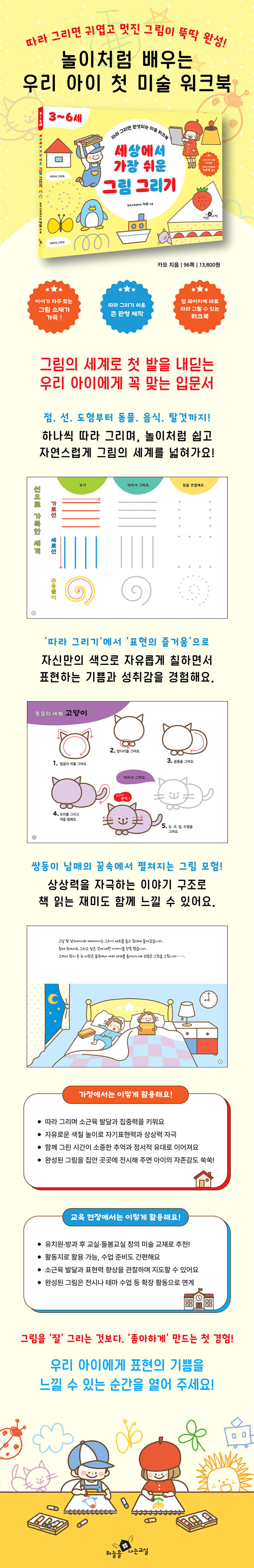 ¡¶¼¼»ó¿¡¼ °¡Àå ½¬¿î ±×¸² ±×¸®±â¡·´Â 5~7¼¼ À¯¾Æ°¡ ±×¸²¿¡ ´ëÇÑ µÎ·Á¿ò ¾øÀÌ Áñ°Ì°Ô ±×¸®°í, »ó»óÇϰí, Ç¥ÇöÇÒ ¼ö ÀÖµµ·Ï ¼³°èµÈ ¿öÅ©ºÏÀÔ´Ï´Ù. žç, ³ª¹«, ³ªºñ, »ç¶÷, µ¿¹°, À½½Ä, ÀÚµ¿Â÷, ·ÎÄÏ µî ¾ÆÀ̵éÀÌ ÁÁ¾ÆÇÏ´Â ´Ù¾çÇÑ ¼ÒÀçµéÀÌ ½ÖµÕÀÌ ³²¸ÅÀÇ ²Þ¼Ó¿¡¼ ÆîÃÄÁö´Â ¸ðÇè À̾߱⠼ӿ¡ µîÀåÇϰí, ±×¸² ±×¸®±â´Â ¾î´À»õ ¾ÆÀÌ¿¡°Ô ÇнÀÀÌ ¾Æ´Ñ ³îÀ̰¡ µË´Ï´Ù.