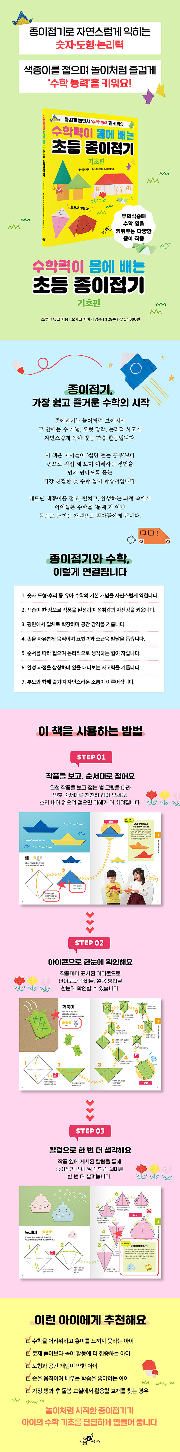 ¡º¼öÇзÂÀÌ ¸ö¿¡ ¹è´Â Ãʵî Á¾ÀÌÁ¢±â ±âÃÊÆí¡»Àº ¾ÆÀ̵éÀÌ Á¾ÀÌÁ¢±â¸¦ ÇÏ¸ç ¼ýÀÚ¡¤µµÇü¡¤°ø°£ °¨°¢¡¤³í¸®·Â±îÁö ÀÚ¿¬½º·´°Ô ±â¸¦ ¼ö ÀÖµµ·Ï ±¸¼ºµÈ ³îÀÌÇü ÇнÀ¼ÀÔ´Ï´Ù. ³×¸ð³ »öÁ¾ÀÌ ÇÑ ÀåÀ¸·Î Æò¸é°ú ÀÔü¸¦ ¸¸µé°í, ¼ø¼¿¡ µû¶ó Á¢°í ¿Ï¼ºÇÏ´Â °úÁ¤ ¼Ó¿¡¼ ¾ÆÀ̵éÀº ¹«ÀǽÄÁß¿¡ ¼öÇÐÀÇ ±âº» ¿ø¸®¸¦ üµæÇÏ°Ô µË´Ï´Ù.