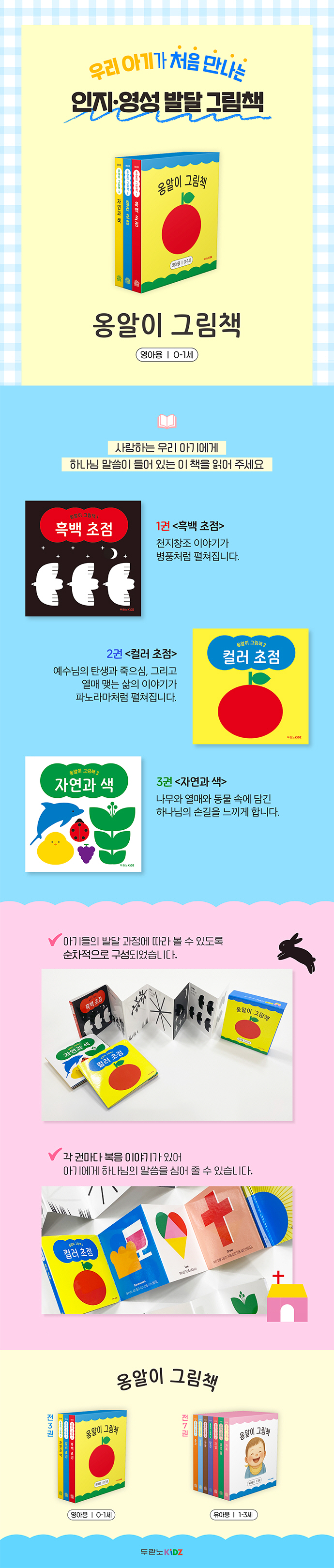 20¿© ³â°£ ²ÙÁØÈ÷ »ç¶û¹ÞÀº ¡¶¿Ë¾ËÀÌ ±×¸²Ã¥¡·(Àü10±Ç)À» »õ·Ó°Ô Àç´ÜÀåÇÏ¿© ¿µ¾Æ¿ë(0-1¼¼, Àü3±Ç), À¯¾Æ¿ë(1-3¼¼, Àü7±Ç)À¸·Î ºÐ±ÇÇÏ¿© Ãâ°£ÇÕ´Ï´Ù. ¾Æ±âµéÀÇ ¹ß´Þ °úÁ¤¿¡ µû¶ó º¼ ¼ö ÀÖµµ·Ï ¼øÂ÷ÀûÀ¸·Î ±¸¼ºµÇ¾ú½À´Ï´Ù. ¿µ¾Æ¿ëÀº 1±Ç ¡´Èæ¹é ÃÊÁ¡¡µ, 2±Ç ¡´Ä÷¯ ÃÊÁ¡¡µ, 3±Ç ¡´ÀÚ¿¬°ú »ö¡µÀ¸·Î ±¸¼ºÇÏ¿´°í, À¯¾Æ¿ëÀº 1±Ç ¡´°¡Á·¡µ, 2±Ç ¡´³ªÀÇ ¸ö¡µ, 3±Ç ¡´°úÀÏ¡µ, 4±Ç ¡´Å»°Í¡µ, 5±Ç ¡´µ¿¹°¡µ, 6±Ç ¡´°¨Á¤¡µ, 7±Ç ¡´¼ýÀÚ¡µ·Î ±¸¼ºÇÏ¿´½À´Ï´Ù.