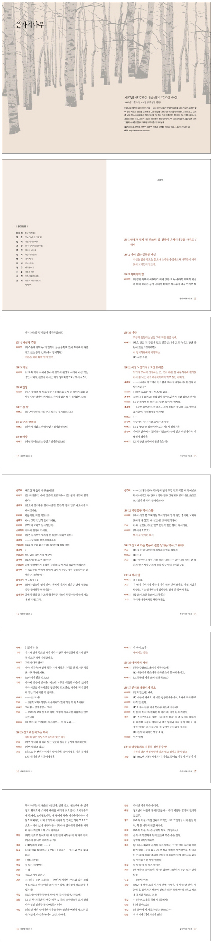 ±è¼öÇö ƯÁý±Ø Á¦ 2±Ç¡ºÀº»ç½Ã³ª¹« È«¼ÒÀåÀÇ °¡À»¡». TV ±Øº»ÀÇ Á¤¼® ±è¼öÇö µå¶ó¸¶ ƯÁý±Ø Áß Á¦ 37ȸ Çѱ¹¹é»ó¿¹¼ú´ë»ó ±Øº»»ó ¼ö»óÀÛ <Àº»ç½Ã³ª¹«>, SBS ƯÁýµå¶ó¸¶ <È«¼ÒÀåÀÇ °¡À»>ÀÇ ´ëº»À» ¸ð¾Æ ¿«¾ú´Ù. <Àº»ç½Ã³ª¹«>´Â ¾î¸Ó´ÏÀÇ Á¦»ç¿¡ °¡Á·µéÀÌ ´Ù½Ã ¸ðÀÌ¸é¼ ¹Ý°©°Ô ȸÆ÷¸¦ ³ª´©±âº¸´Ü ±×µ¿¾È ½×¿© ÀÖ´ø ¼·ÎÀÇ ¾Ó±ÝÀ» µå·¯³»´Â ¸ð½ÀÀ» ÅëÇØ ¾Æ¹öÁöÀÇ ¿Ü·Î¿òÀ» ´ã¾Æ³½ ÀÛǰÀÌ´Ù. ¶ÇÇÑ <È«¼ÒÀåÀÇ °¡À»>Àº ÆÄÃâ¼Ò ¼ÒÀåÀ¸·Î Á¤³âÅðÁ÷ÇØ ¿¬±ÝÀ¸·Î »ì¾Æ°¡´Â 60¼¼ È«»ó¼ö¿Í ±×¸¦ µÑ·¯½Ñ °¡Á·µéÀÇ À̾߱⸦ Àû³ª¶óÇÏ°Ô Ç¥ÇöÇÑ ÀÛǰÀÌ´Ù. ´ëº»¸¸À¸·Îµµ ´«¹°ÀÌ ³ª´Â ±è¼öÇöÀÇ ÀÛǰÀº ¿ì¸®°¡ ¾î¶»°Ô »ì¾Æ¾ß Çϴ°¡¸¦ µÇµ¹¾Æº¸°Ô ÇÑ´Ù.