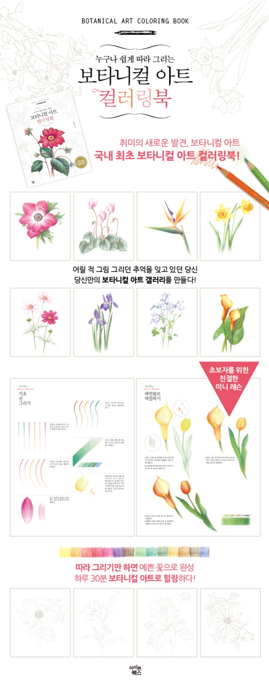 ÀÌ Ã¥Àº ±×¸²¿¡ ¼ÒÁúÀÌ ¾ø°í ¼Åø´Ù´Â ÀÌÀ¯·Î ½ÃÀÛÇÏÁö ¸øÇÏ´Â ºÐµé¿¡°Ô ¿ë±â¸¦ ½Ç¾îÁÖ°í, ÀλýÀÇ ¹þÀÌ µÇ¾îÁÙ ÁøÁ¤ÇÑ Ãë¹Ì¸¦ °¡Áú ¼ö Àֱ⸦ °£ÀýÈ÷ ¹Ù¶ó´Â ¸¶À½À¸·Î ¸¸µé¾ú½À´Ï´Ù. º¸Å¸´ÏÄà ¾ÆÆ®¸¦ óÀ½ ½ÃÀÛÇÏ´Â ºÐµéÀÌ ½±°í Àç¹ÌÀÖ°Ô ¹Ø±×¸²À» µû¶ó ±×¸®±â¸¸ ÇØµµ ¿Ï¼ºÇÒ ¼ö ÀÖµµ·Ï ¹Ì´Ï ·¹½¼, ¿øº» ±×¸²°ú ¹Ø±×¸²À¸·Î ±¸¼ºÇØ ³õ¾Ò½À´Ï´Ù.