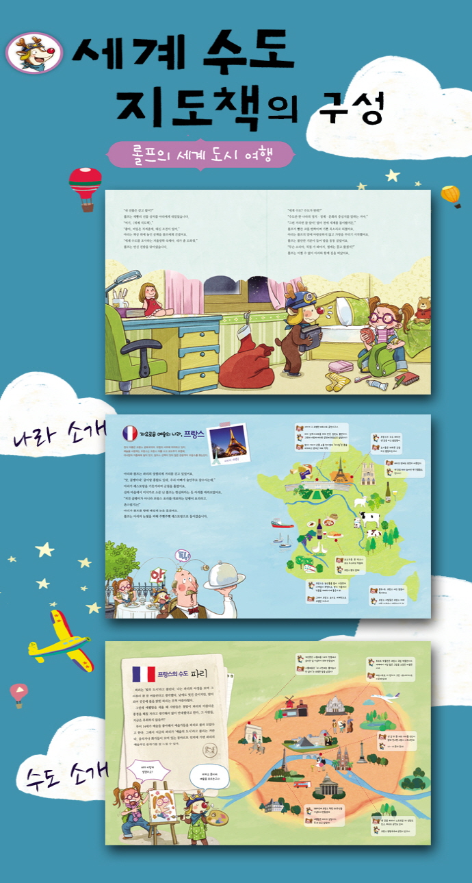 Ã¥¼Ò°³¡¸»ó»óÀÇ ´«¡¹Á¦3±Ç¡º¼¼°è ¼öµµ ÁöµµÃ¥¡»<·ÑÇÁÀÇ ¼¼°è µµ½Ã ¿©Çà>. ÀÌ Ã¥Àº ¹Ù»Û »êŸ ÇҾƹöÁö¸¦ ´ë½ÅÇØ ¼±¹°À» ÀüÇØÁÖ·¯ ¿Â »¡°£ ÄÚ »ç½¿ ·ÑÇÁ°¡ ¾Æ¸®¿¡°Ô µéŰ¸é¼ºÎÅÍ ½ÃÀÛÇÕ´Ï´Ù. ¾Æ¸®´Â ºñ¹ÐÀ» ÁöÄÑÁÖ´Â ´ë½Å¿¡, °Ü¿ï¹æÇÐ ¼÷Á¦¸¦ ÇØ´Þ¶ó°í ÇÕ´Ï´Ù. ¼¼°è ¿©ÇàÀ» ´Ù³à¿Â °æÇèÀ» ¾ê±âÇØÁÖ·Á´ø ·ÑÇÁ, ±×·±µ¥ ¾Æ¸®´Â ¾î´À»õ °¡¹æÀ» ì±â°í Àֳ׿ä? ·ÑÇÁ´Â ¾î¿ ¼ö ¾øÀÌ ¾Æ¸®¸¦ ½ä¸Å¿¡ Å¿ì°í ¼¼°è ¿©ÇàÀ» ¶°³³´Ï´Ù. ¾Æ¸®¿Í ·ÑÇÁ¸¦ µû¶ó ¼¼°è 10°³±¹ ¼öµµ¸¦ µ¹¾Æº¸¸ç, ¼öµµ°¡ ¹«¾ùÀÎÁö, ¾î¶² À§Ä¡¿¡ ¼öµµ°¡ ÀÚ¸®Àâ°Ô µÇ¾ú´ÂÁö, °¢ ³ª¶óÀÇ Æ¯Â¡°ú ¼öµµÀÇ ÁÖ¿äÇÑ ¹®ÈÀçµéÀ» ½±°Ô ÀÌÇØÇÒ ¼ö ÀÖµµ·Ï ±¸¼ºÇÏ¿´½À´Ï´Ù.