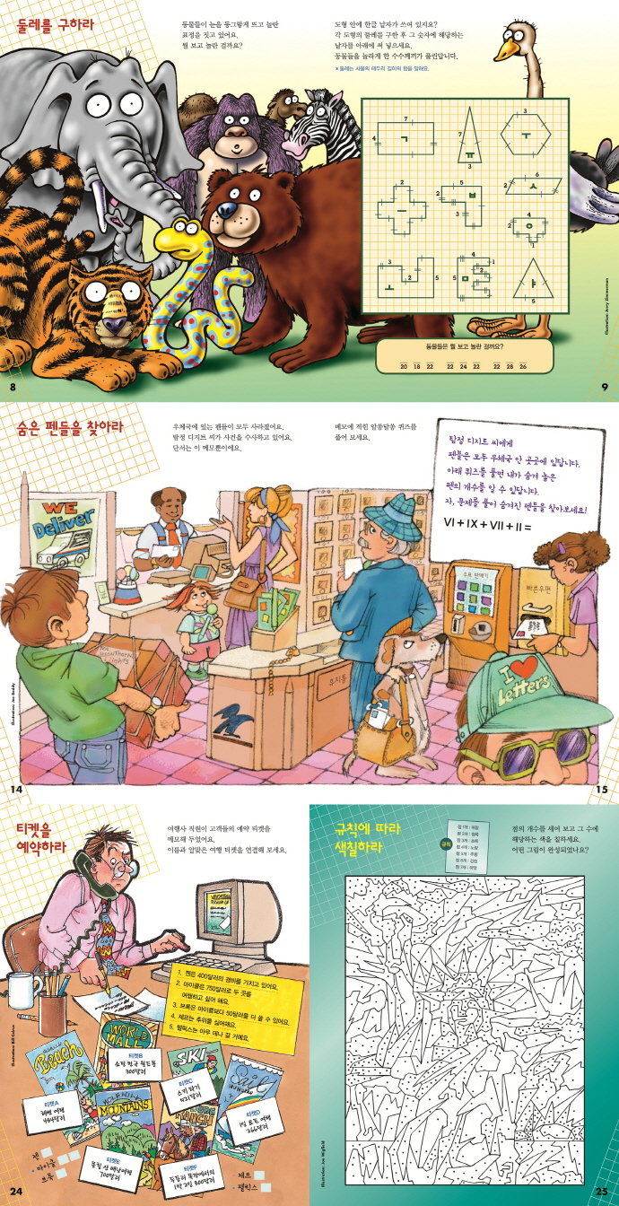 ¼öÇÐÀº Àç¹Ì¾ø°í, º¹ÀâÇϰí, ¾î·Æ´Ù¶ó´Â ÀνÄÀÌ ¾î¸¥ÀÌ°í ¾ÆÀÌ°í ´ëºÎºÐÀÇ »ý°¢ÀÌ´Ù. ±×·¯³ª ¼öÇÐÀº »ýȰ¿¡¼ ²À ÇÊ¿äÇÏ¸ç ´Ù¾çÇÑ »óȲ¿¡¼ À¯¿¬ÇÑ ¹®Á¦Çذá·ÂÀ» Ű¿ö ÁÖ´Â µ¥ ¼öÇи¸ÇÑ °ÍÀÌ ¾ø´Ù. ÀÌ Ã¥À» º¸¸é ¼öÇÐÀ» °ÔÀÓó·³ Àç¹Õ°Ô ¸¸³¯ ¼ö ÀÖ´Ù. ¿¬»ê ¹®Á¦¸¦ Ç®¾î¼ Ã¥ Á¦¸ñÀ» ¸ÂÈ÷´Â ÆÛÁñ, ¿¬ÇÊÀ» ºÐ·ùÇϸç ÁýÇÕÀ» ¹è¿ì´Â ÆÛÁñ, ŽÁ¤ÀÌ µÇ¾î ´Ü¼¸¦ ã´Â ¼ûÀº±×¸²Ã£±â ÆÛÁñ, Á¡ÀÇ °³¼ö¿¡ µû¸¥ »ö±òÀ» Ä¥ÇØ¼ ±×¸²À» ¿Ï¼ºÇÏ´Â ÆÛÁñ µî Ã¥À» ¿©´Â ù ÀåºÎÅÍ µ¤´Â ¸¶Áö¸· ÆäÀÌÁö±îÁö Àç¹ÌÀÖ´Â ÆÛÁñÀÌ °¡µæÇÏ´Ù. ÀÌ ÄûÁ Ç®´Ù º¸¸é ¼öÇÐÀÌ ÁÁ¾ÆÁö°í, ÀÚ²Ù Ç®°í ½Í¾îÁø´Ù.