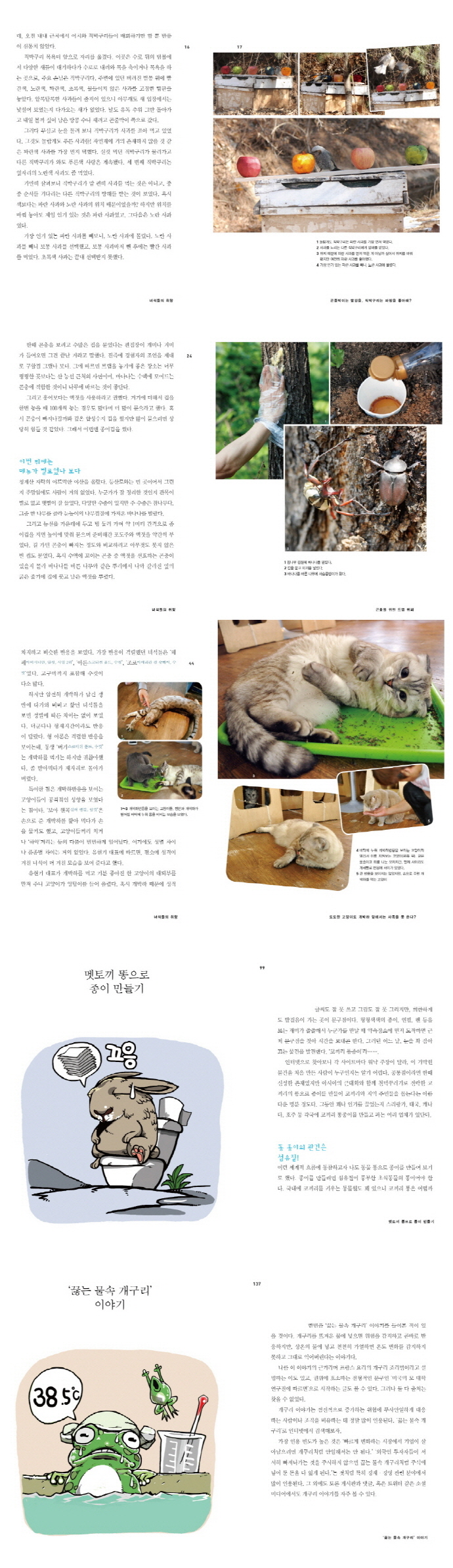 ÀÌ Ã¥¿¡´Â »õ³ª °í¾çÀÌ, ¸ð±â, °³±¸¸®Ã³·³ Àͼ÷ÇÑ µ¿¹°ÀÌ ¸¹ÀÌ ³ª¿Â´Ù. ÁÖº¯¿¡¼ ÈçÈ÷ º¸´Â µ¿¹°µéÀÌÁö¸¸, Á¤ÀÛ ±×µé¿¡ ´ëÇØ ¾Æ´Â °ÍÀº ¸¹Áö ¾Ê´Ù. ÇÏÁö¸¸ °ÆÁ¤ÇÒ ÇÊ¿ä ¾ø´Ù. ÀúÀÚÀÇ ¾û¶×Çϰí Àç±â ¹ß¶öÇÑ ½ÇÇèÀ» µû¶ó°¡´Ù º¸¸é »ý¹°ÀÇ »ýÅÂ, Ư¡, ÃëÇâ µîÀº ÀÚ¿¬½º·¹ ¾Ë°Ô µÉ °ÍÀÌ´Ù. ³î¸é¼ ¹è¿ì´Â °Íó·³ ¸»ÀÌ´Ù.