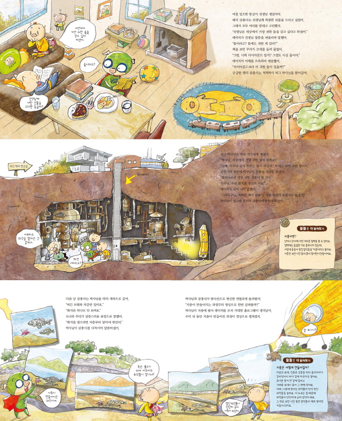 µÅÁöÇб³ÀÇ ÁÖÀΰø µ¥ÀÌÁö, ²Ù¸®, µµ´Ï´ÂÀ̹ø ¹æ±ÛÀÌ ¼±»ý´Ô »ýÀÏ¿¡ ȼ®À» ¼±¹°Çϱâ·Î Çß¾î¿ä. ±×·±µ¥ ȼ®Àº ¾îµð¼ ãÀ» ¼ö ÀÖÀ»±î¿ä? ±Ã±ÝÇØÇÏ´Â »ïÃѻ縦 À§ÇØ ÇÇ±× ¹Ú»ç´ÔÀº ¸ÕÀú ȼ®ÀÌ »ý°Ü³ª´Â ¶¥¼ÓÀ¸·Î »ïÃѻ縦 µ¥·Á°¬¾î¿ä. ¹Ú»ç´ÔÀº µÅÁö »ïÃѻ翡°Ô ȼ®ÀÌ ¾î¶»°Ô ¸¸µé¾îÁö´ÂÁö, ÁöÃþÀ̶ó ºÒ¸®´Â¶¥¼ÓÀº ¾î¶² ¸ð¾çÀÎÁö, ÁöÃþÀÇ ³ªÀ̰¡ ¾ó¸¶ÀÎÁö ¾Ë·Á ÁÖ¼ÌÁö¿ä. ÁöÃþÀ»±¸¼®±¸¼® »ìÇÇ°í ³ª¼, »ïÃÑ»ç´Â ¶¥ À§·Î ¿Ã¶ó¿Í º»°ÝÀûÀ¸·Î ȼ®À» ã±â ½ÃÀÛÇß¾î¿ä. ±×·±µ¥ ¹®Á¦°¡ »ý°å¾î¿ä! ȼ® ã±â°¡ »ïÃÑ»ç »ý°¢Ã³·³ ½±Áö¸¸Àº ¾ÊÀº°Å¿¹¿ä. ÁöÃþ°ú ȼ®¿¡ ´ëÇØ ¼Ó¼ÓµéÀÌ ¹è¿î ¡®¶¥¼Ó ¹Ú»ç¡¯ µÅÁö »ïÃÑ»ç´Â °ú¿¬ ¼±»ý´Ô²² ¼±¹°ÇÒ È¼®À»Ã£À» ¼ö ÀÖÀ»±î¿ä? µÅÁö »ïÃÑ»ç¿Í ÇÔ²² ¿ì¸®µµ ȼ®À» Çѹø ã¾ÆºÁ¿ä!