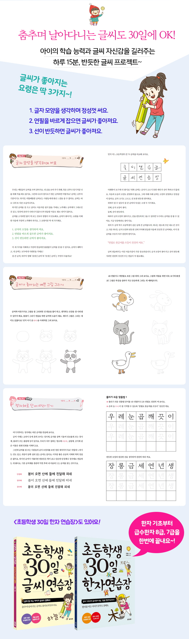 ÇÑÀÚ ±âÃʸ¦ ¾Ë·ÁÁÖ´Â ¡¶ÃʵîÇлý 30ÀÏ ÇÑÀÚ ¿¬½ÀÀå¡·°ú ¾î¸¥À» À§ÇÑ ±Û¾¾ ¿¬½ÀÃ¥ ¡¶30Àϰ£ÀÇ ±Û¾¾ ¿¬½À¡·À» ½è°í, ¡¶´ç½Åµµ Áö±Ýº¸´Ù 10¹è »¡¸® Ã¥À» Àд´١·, ¡¶¸öÀÌ ±»Àº »ç¶÷Àϼö·Ï »ìÀÌ ºüÁö´Â ½ºÆ®·¹Äª¡·, ¡¶³ªµµ ¸» Á» ÀßÇßÀ¸¸é ÁÁ°Ú³×¡· µîÀ» ¿ì¸®¸»·Î ¿Å°å¾î¿ä.