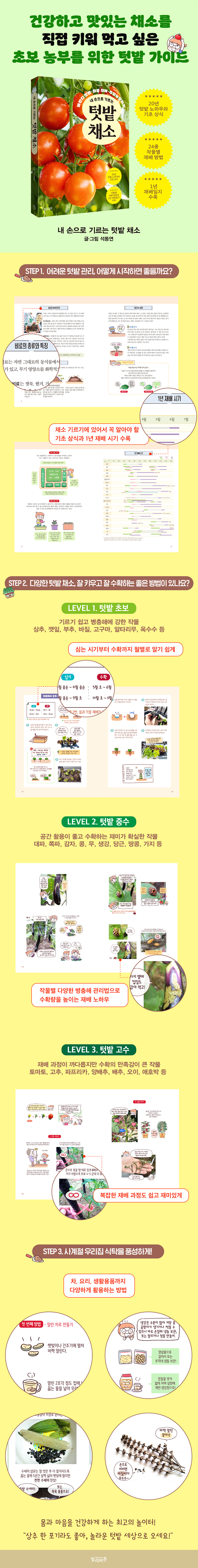 20³â µ¿¾È º£¶õ´Ù ÀÛÀº ȺкÎÅÍ ¿Á»ó ÅÔ¹ç, ³ÐÀº ³ëÁö ÅÔ¹ç±îÁö ´Ù¾çÇÑ È¯°æ¿¡¼ ÀÛ¹°À» ±â¸£¸ç ½×¾Æ¿Â °æÇèÀ» ¹ÙÅÁÀ¸·Î ÅÔ¹ç Àç¹è ¹æ¹ýÀ» ½±°í Àç¹ÌÀÖ°Ô Ç®¾î³Â´Ù. dz¼ºÇÏ°Ô Ã¤¼Ò¸¦ ¼öÈ®ÇÏ·Á¸é ÀÛ¹°¸¶´Ù ´Ù¸¥ Àç¹è ¹æ¹ýÀ» ¾Æ´Â °ÍÀÌ Áß¿äÇÏ´Ù. ÀÌ Ã¥Àº ¿ì¸®°¡ Àϻ󿡼 ÀÚÁÖ ¸Ô´Â ÀÙä¼Ò, »Ñ¸®Ã¤¼Ò, ¿¸Åä¼Ò µî 24°¡Áö ÀÛ¹°À» Áß½ÉÀ¸·Î ÆÄÁ¾ºÎÅÍ ¼öÈ®±îÁöÀÇ °úÁ¤À» ½Ã°£ÀÇ È帧¿¡ µû¶ó »çÁø°ú ±×¸²À¸·Î ÀÚ¼¼È÷ ¼Ò°³ÇÑ´Ù.